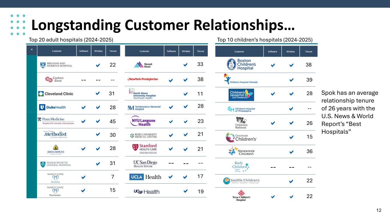 Customer Software Wireless Tenure 12 Longstanding Customer Relationships… 22 31 -- -- -- 45 30 28 31 33 7 Arizona Customer Software Wireless Tenure 11 28 23 21 21 17 -- -- -- 19 Top 20 adult hospitals (2024-2025) Customer Software Wireless Tenure 15 38 22 -- 26 36 28 -- -- -- Top 10 children’s hospitals (2024-2025) * Spok has an average relationship tenure of 26 years with the U.S. News & World Report’s “Best Hospitals” 28 15 Rochester 38 22 39