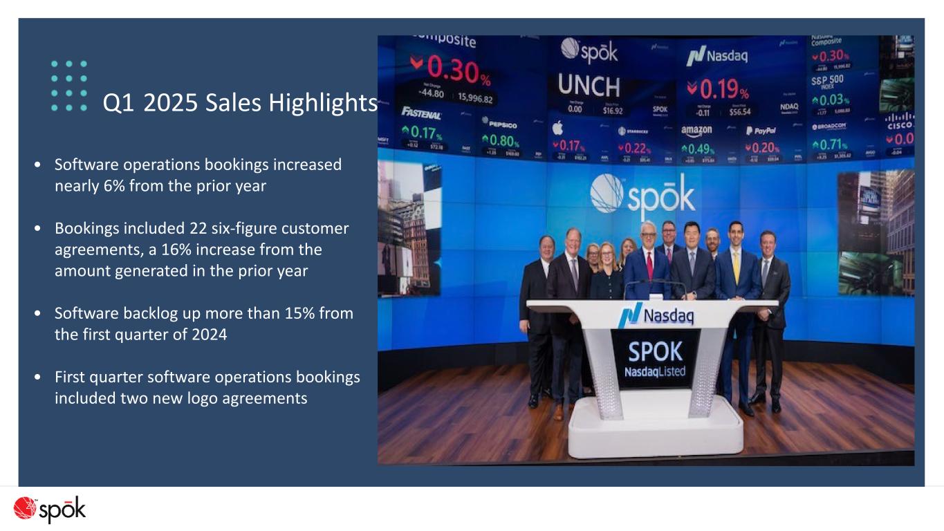 Q1 2025 Sales Highlights • Software operations bookings increased nearly 6% from the prior year • Bookings included 22 six-figure customer agreements, a 16% increase from the amount generated in the prior year • Software backlog up more than 15% from the first quarter of 2024 • First quarter software operations bookings included two new logo agreements 24