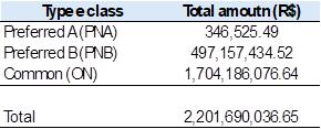 | 1. | Approve the distribution of interim dividends in the amount of R$2,201,690,036.65, equivalent to R$0.862972093 per common share (ON), R$2.430751379 per preferred share A (PNA) and R$1.823063534 per preferred share B (PNB), based on 25% of the adjusted distributable net income of the result recorded in the 3rd quarter of 2024, being. |