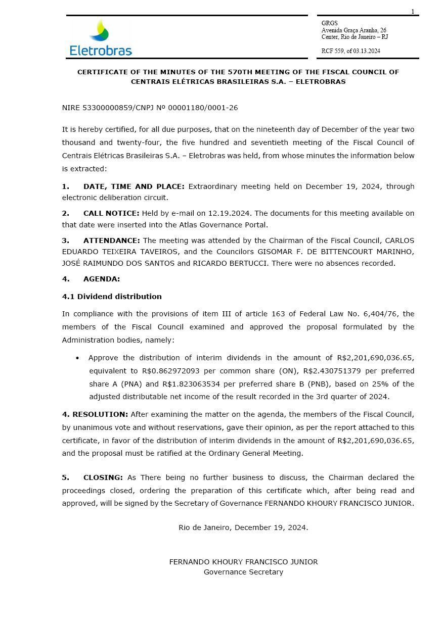 CENTRAIS ELÉTRICAS BRASILEIRAS S.A. - ELETROBRÁS