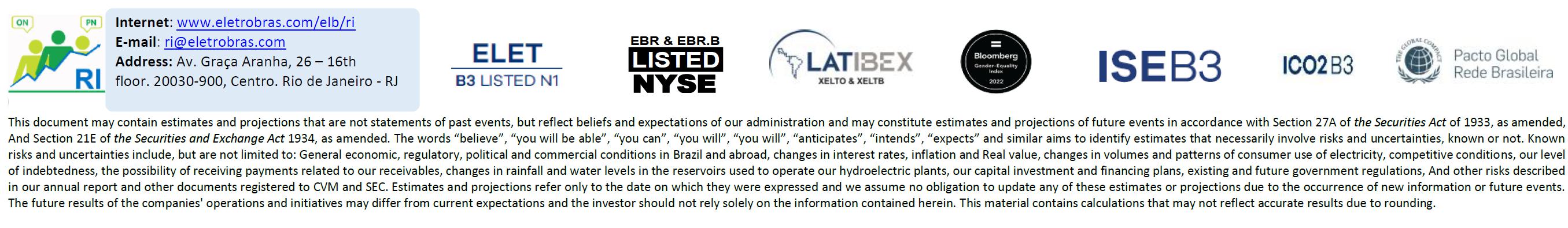 Rio de Janeiro, February 12, 2025, regarding the article published on the O Globo newspaper website on February 11, 2025 and entitled “Eletrobras tries to recover, via the STJ, a multimillion-dollar amount paid for bonds issued 50 years ago”, Eletrobras informs that R$142,564,143.73 has already been recovered under the Execution of Extrajudicial Title No. 0601442-29.2021.8.04.6500, filed by Bruno Eduardo Thome de Souza, which is being processed in the Single Court of the District of Presidente Figueiredo/AM, of the total amount of R$146,594,251.79, which were collected through 10 warrants issued on the afternoon of February 10 (Monday) by this court. Of the remaining amount, Caixa Econômica Federal reported that a further R$2,030,108.06 is already subject to internal recovery procedures, and Banco Bradesco reported that it has taken measures in relation to the remaining amount of R$2,000,000.00.