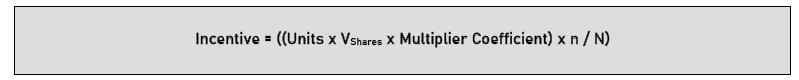 6.2. The amount of the Incentive to be delivered to Participants on the Settlement Date of each Cycle will be conditional and determined based on: (i) the number of Units granted to the Participant in question, (ii) the verification of achievement of the Plan Objectives established in Annex I of this Plan, which must be approved by the Board of Directors at the beginning of each Cycle ("Plan Objectives"); and (iii) the share price.