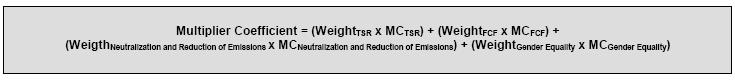 3.3. At the beginning or before the start of the Cycle, the Board of Directors will determine the target scale for achieving this Objective. The degree of achievement of Neutralization or Compensating of Emissions ("Degree of Achievement of Neutralization” or “Offsetting of Emissions") and the respective Multiplier Coefficient for Neutralization or Compensating of Emissions to be applied will be determined in accordance with the aforementioned target scale.