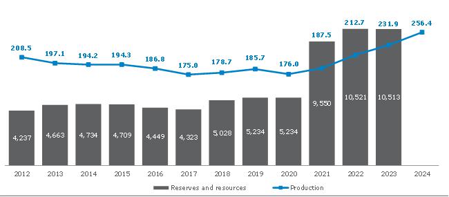 In line with the economic plan, in July 2024, the ‘May Pact’ was signed, which included fiscal balance and a public spending level below 25% of GDP among its goals. The Treasury has been rigorous in this respect, considering it a central axis of its economic policy. In this way, the achieved surplus has allowed it to meet its obligations, paying both amortizations and interest on its foreign-currency international obligations, significantly reducing the country risk from 1,938 in December 2023 to 635 basis points in December 2024. This improvement has reopened the international capital markets for Argentine companies, with 16 corporate bond issues, including two by Pampa and one by TGS, enabling the refinancing of the companies’ US$-denominated debts. However, the fiscal adjustment has impacted economic activity, which accumulated a 3% year-on-year decline as of the third quarter of 2024.