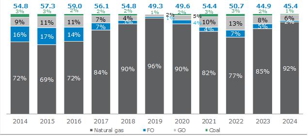 In 2024, and thanks to our asset portfolio’s operational excellence, we were recognized once again as the country’s largest independent power producer. Our asset portfolio includes four CCGTs that, together with our Vaca Muerta gas supply, offer us a key competitive advantage given the imminent sector deregulation. Our thermal units recorded a 95.4% commercial availability, reflecting our assets’ strength and reliability, backed by sustained maintenance and modernization investments toward efficiency.