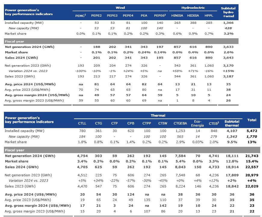 Another important milestone in 2024 was the significant improvement in our debt profile. Thanks to our proactivity and leveraging market opportunities, we placed two 7- and 10-year international bonds with the most competitive market rates. Furthermore, backed by solid cash generation in our power generation and gas production businesses, we closed the year with a net debt of US$410 million, the lowest level since 2016. These achievements reaffirm the market’s trust in our management, contributing more robustly to our growth plan.