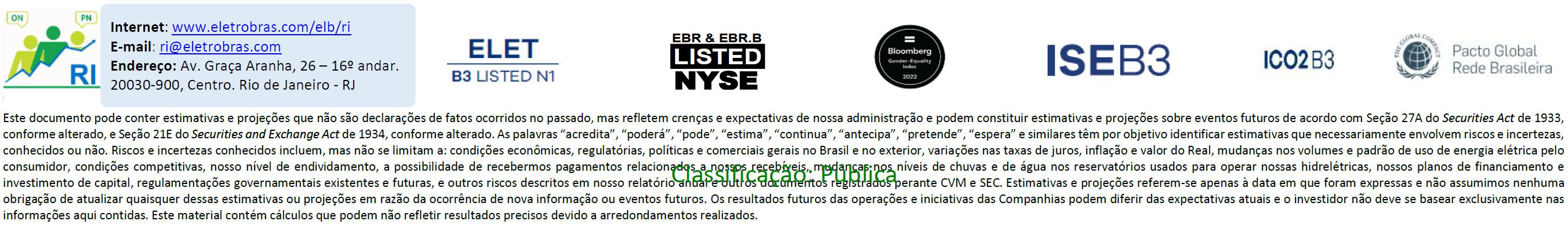 This document may contain estimates and projections that are not statements of past events but reflect our management’s beliefs and expectations and may constitute forward-looking statements under Section 27A of the Securities Act of 1933, as amended, and Section 21E of the Securities and Exchange Act of 1934, as amended. The words “believes”, “may”, “can”, “estimates”, “continues”, “anticipates”, “intends”, “expects”, and similar expressions are intended to identify estimates that necessarily involve known and unknown risks and uncertainties. Known risks and uncertainties include, but are not limited to: general economic, regulatory, political, and business conditions in Brazil and abroad; fluctuations in interest rates, inflation, and the value of the Brazilian Real; changes in consumer electricity usage patterns and volumes; competitive conditions; our level of indebtedness; the possibility of receiving payments related to our receivables; changes in rainfall and water levels in reservoirs used to operate our hydroelectric plants; our financing and capital investment plans; existing and future government regulations; and other risks described in our annual report and other documents filed with the CVM and SEC. Estimates and projections refer only to the date they were expressed, and we do not assume any obligation to update any of these estimates or projections due to new information or future events. Future results of the Company’s operations and initiatives may differ from current expectations, and investors should not rely solely on the information contained herein. This material contains calculations that may not reflect precise results due to rounding.