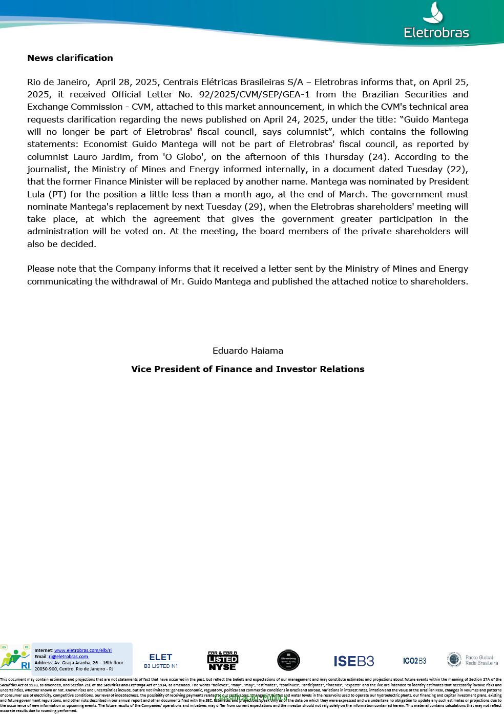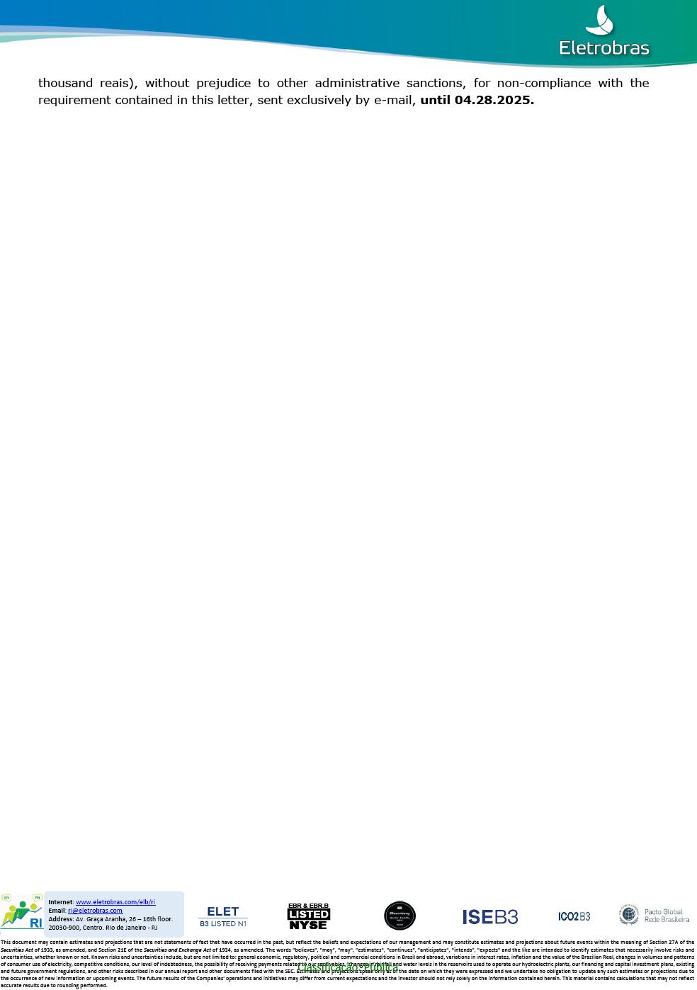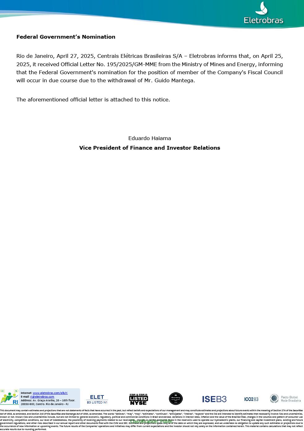 | CENTRAIS ELÉTRICAS BRASILEIRAS S.A. - ELETROBRÁS | ||