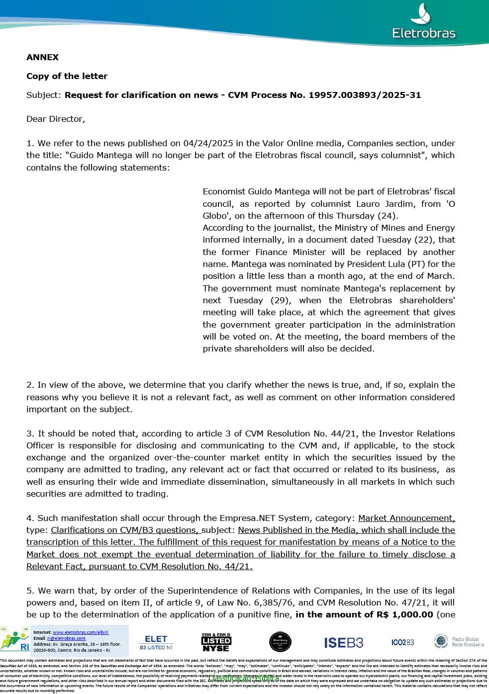 CENTRAIS ELÉTRICAS BRASILEIRAS S.A. - ELETROBRÁS
