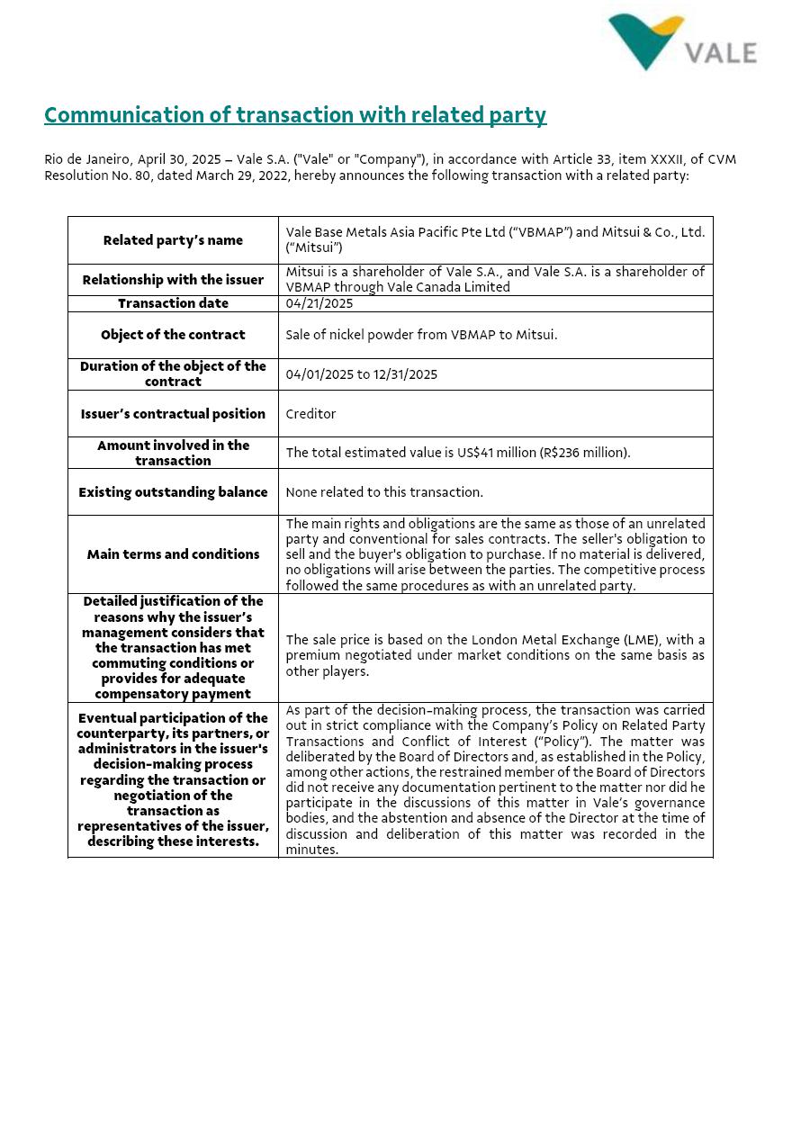 | Date: April 30, 2025 | Director of Investor Relations | |