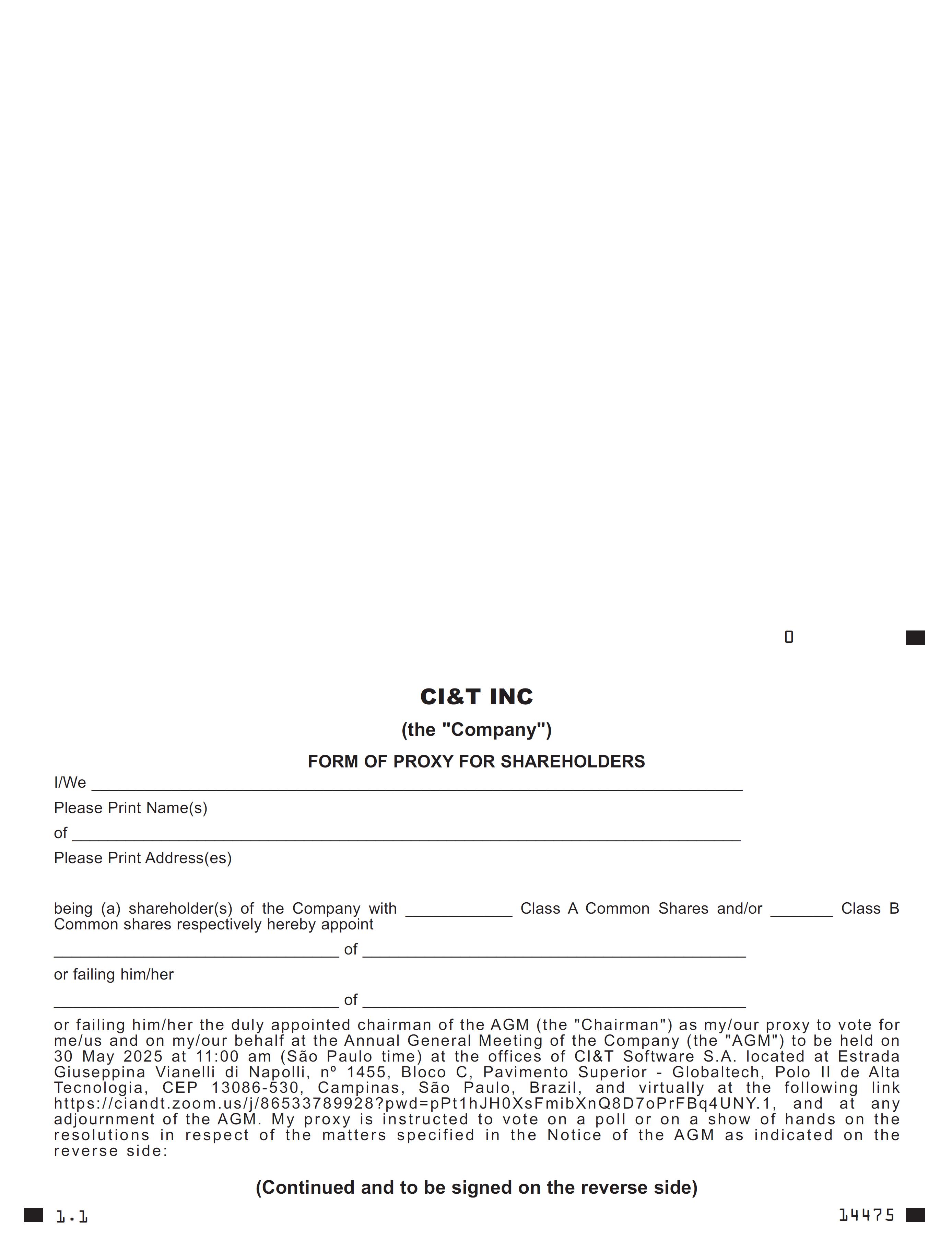 Virtual Attendance: You can also join us virtually via the following link: https://ciandt.zoom.us/j/86533789928?pwd=pPt1hJH0XsFmibXnQ8D7oPrFBq4UNY.1