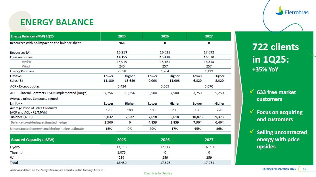 This document may contain estimates and projections that are not statements of past events but reflect our management’s beliefs and expectations and may constitute forward-looking statements under Section 27A of the Securities Act of 1933, as amended, and Section 21E of the Securities and Exchange Act of 1934, as amended. The words “believes”, “may”, “can”, “estimates”, “continues”, “anticipates”, “intends”, “expects”, and similar expressions are intended to identify estimates that necessarily involve known and unknown risks and uncertainties. Known risks and uncertainties include, but are not limited to: general economic, regulatory, political, and business conditions in Brazil and abroad; fluctuations in interest rates, inflation, and the value of the Brazilian Real; changes in consumer electricity usage patterns and volumes; competitive conditions; our level of indebtedness; the possibility of receiving payments related to our receivables; changes in rainfall and water levels in reservoirs used to operate our hydroelectric plants; our financing and capital investment plans; existing and future government regulations; and other risks described in our annual report and other documents filed with the CVM and SEC. Estimates and projections refer only to the date they were expressed, and we do not assume any obligation to update any of these estimates or projections due to new information or future events. Future results of the Company’s operations and initiatives may differ from current expectations, and investors should not rely solely on the information contained herein. This material contains calculations that may not reflect precise results due to rounding.