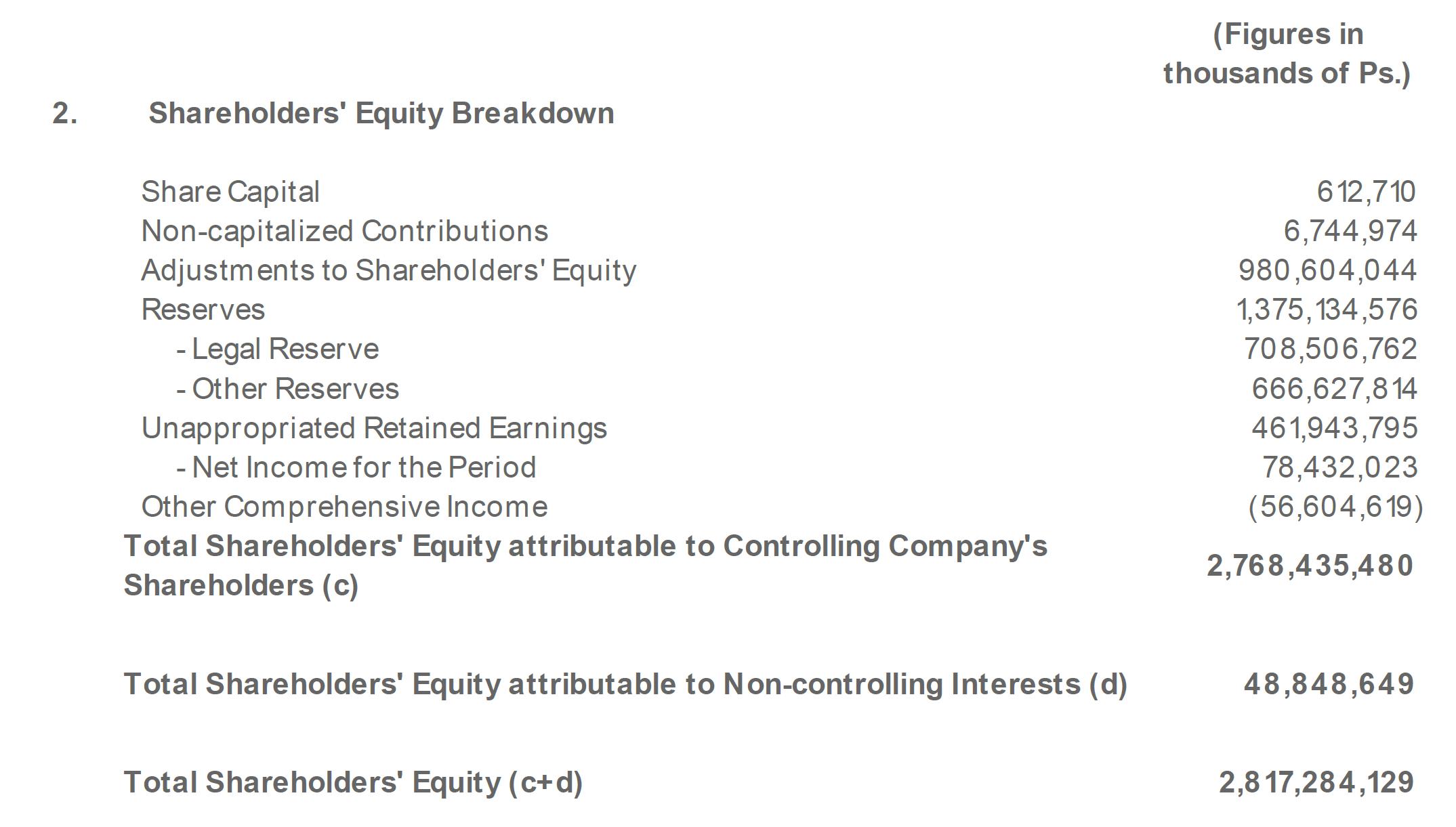 On the other hand, please find below information on the number of book-entry common shares, with a face value of Ps. 1 and one voting right each, held by the Company's controlling group as of March 31, 2025.