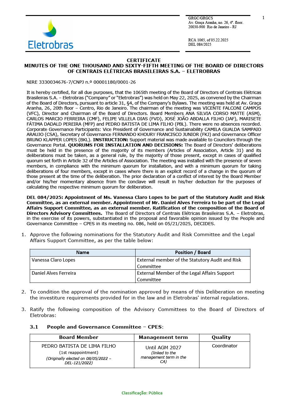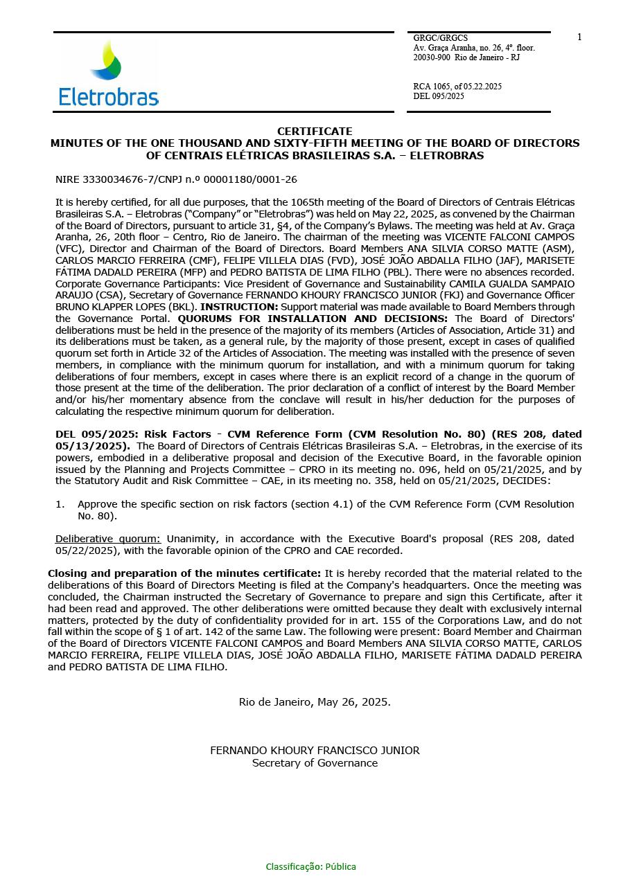 | CENTRAIS ELÉTRICAS BRASILEIRAS S.A. - ELETROBRÁS | ||