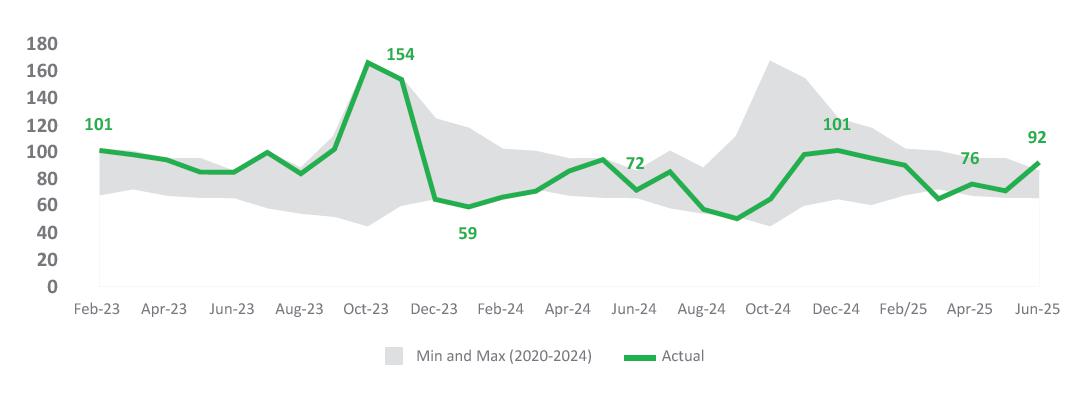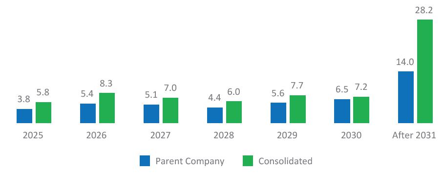Financial management: Net debt totaled R$ 40.13 billion in 2Q25, up R$ 0.85 billion from 1Q25 and down R$ 2.84 billion from 2Q24. The Company's average debt maturity was extended by 2.6 months YoY, while the total average cost increased to CDI + 0.57% p.a. in 2Q25 from CDI + 0.48% p.a. in 2Q24.
