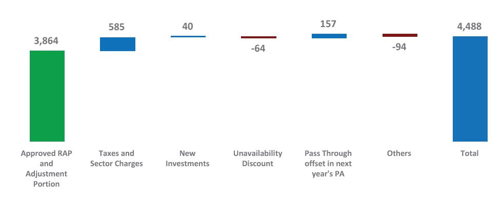 (-) R$ 483 million YoY reduction in the Annual Permitted Revenue (RAP) related to the 2024 Periodic Tariff Review (2024 RTP), of which R$ 328 million related to Postponement Adjustment Portion (PA Postergação).