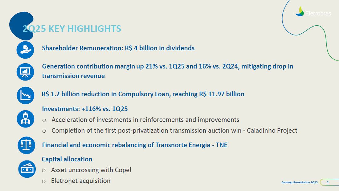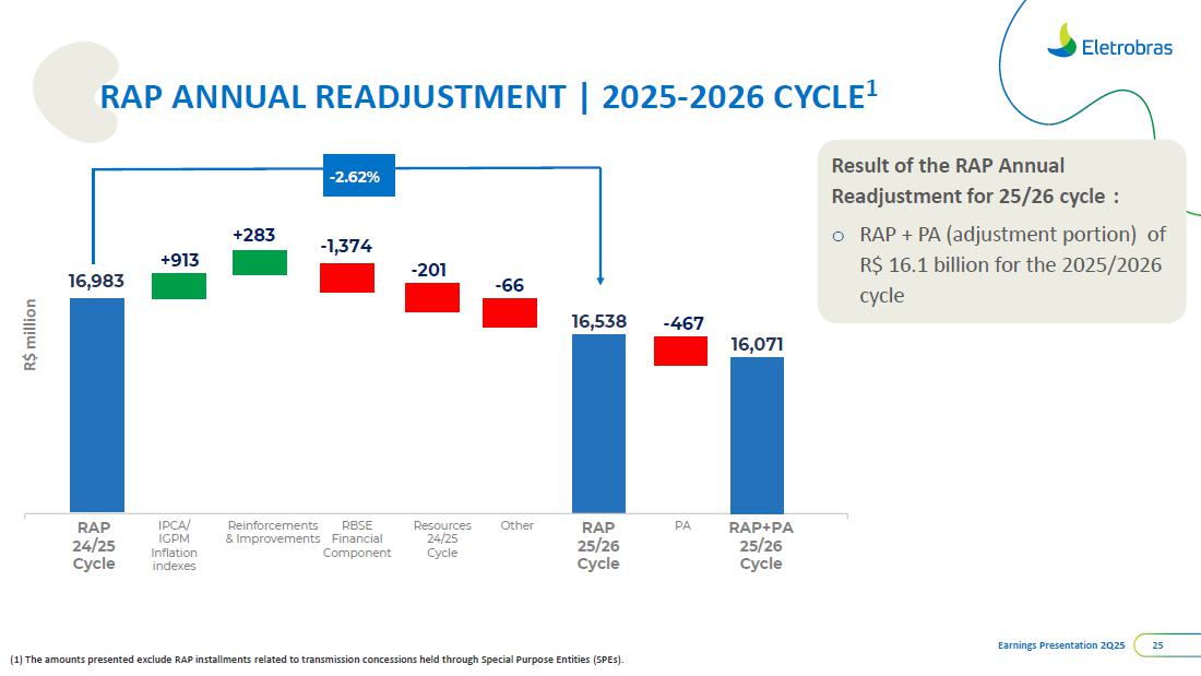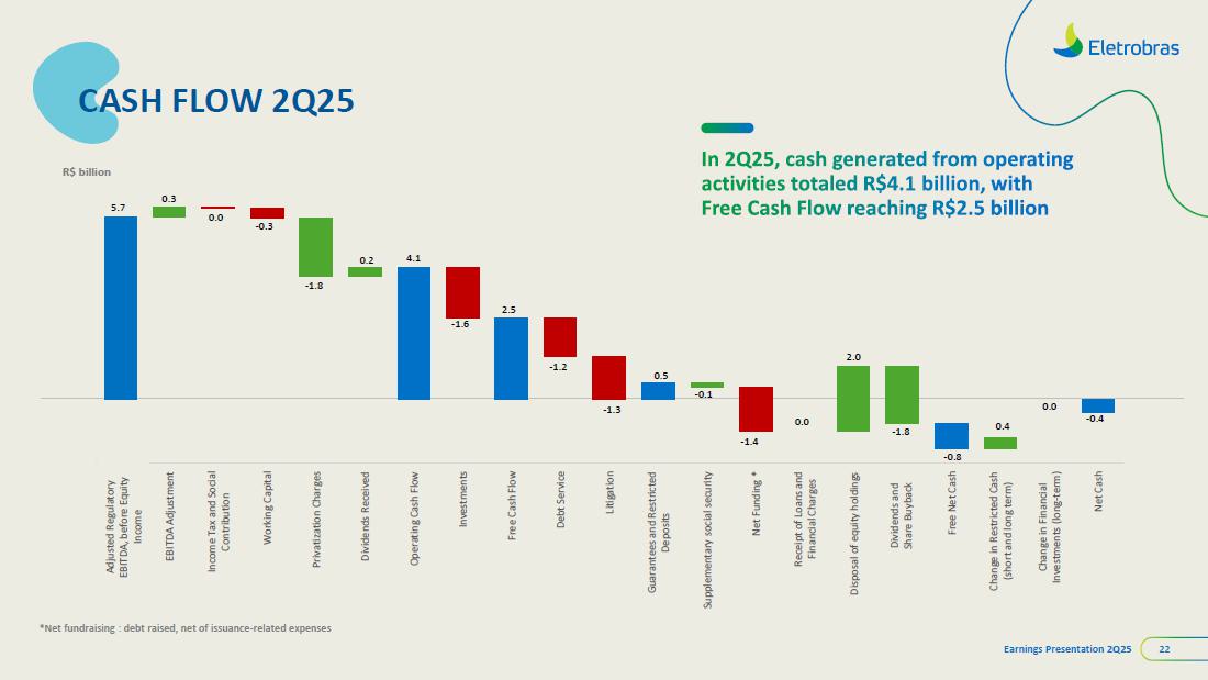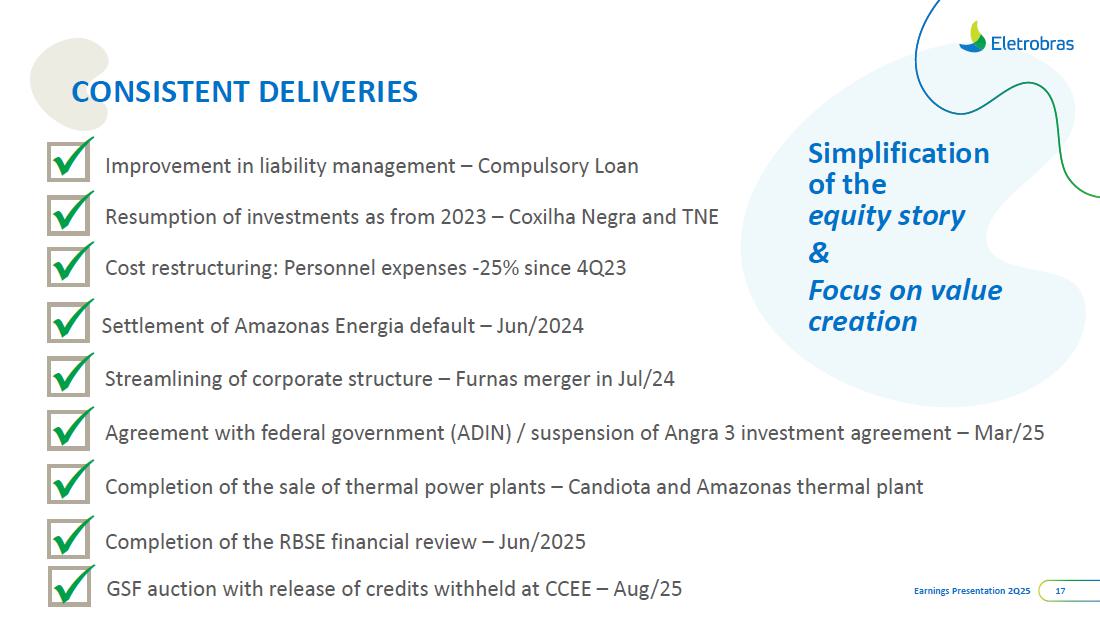 This document may contain estimates and projections that are not statements of past events but reflect our management’s beliefs and expectations and may constitute forward-looking statements under Section 27A of the Securities Act of 1933, as amended, and Section 21E of the Securities and Exchange Act of 1934, as amended. The words “believes”, “may”, “can”, “estimates”, “continues”, “anticipates”, “intends”, “expects”, and similar expressions are intended to identify estimates that necessarily involve known and unknown risks and uncertainties. Known risks and uncertainties include, but are not limited to: general economic, regulatory, political, and business conditions in Brazil and abroad; fluctuations in interest rates, inflation, and the value of the Brazilian Real; changes in consumer electricity usage patterns and volumes; competitive conditions; our level of indebtedness; the possibility of receiving payments related to our receivables; changes in rainfall and water levels in reservoirs used to operate our hydroelectric plants; our financing and capital investment plans; existing and future government regulations; and other risks described in our annual report and other documents filed with the CVM and SEC. Estimates and projections refer only to the date they were expressed, and we do not assume any obligation to update any of these estimates or projections due to new information or future events. Future results of the Company’s operations and initiatives may differ from current expectations, and investors should not rely solely on the information contained herein. This material contains calculations that may not reflect precise results due to rounding.