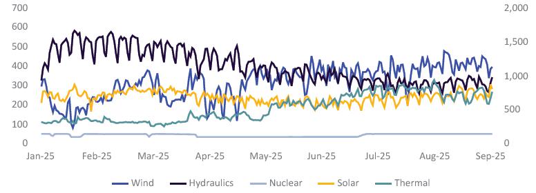 Contribution margin from generation, ACL + MCP: The contribution margin from energy traded in the Free Contracting Environment (ACL) and settled in the Short Term Market (MCP) increased to R$ 86/MWh in 3Q25 from R$ 48/MWh in 3Q24, considering the resources available for allocation in both segments.