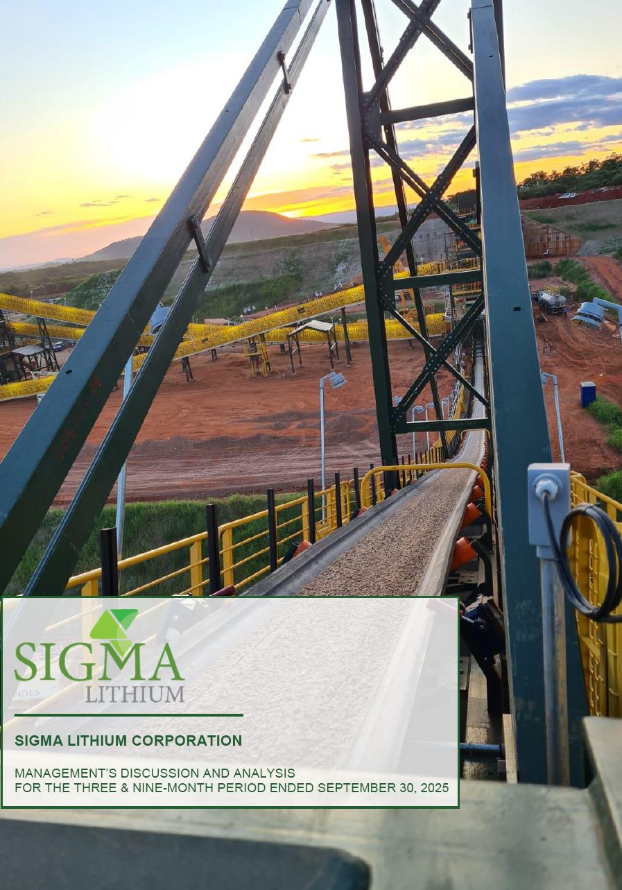 SIGMA LITHIUM CORPORATION MANAGEMENT’S DISCUSSION AND ANALYSIS FOR THE THREE AND NINE-MONTH PERIOD ENDED SEPTEMBER 30, 2025 (Expressed in thousands of United States dollars, except per share amounts or unless stated otherwise) |