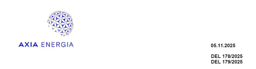 Ø DEL-178/2025. Approval of the interim financial statements for the period ended 09/30/2025. (RES 428, of 11.04.2025). Axia Energia’s Board of Directors, in the use of the powers vested therein and as part of a proposal and decision from the Executive Board and the favorable opinion issued by the Audit and Risks Committee, HEREBY RESOLVES: