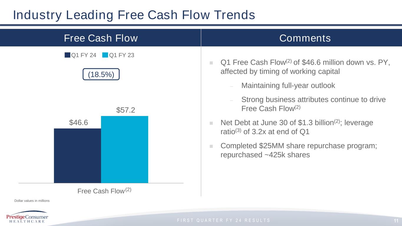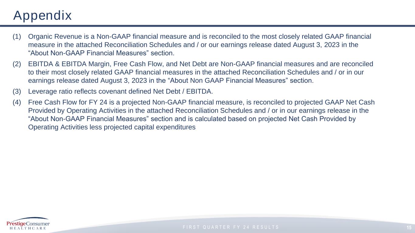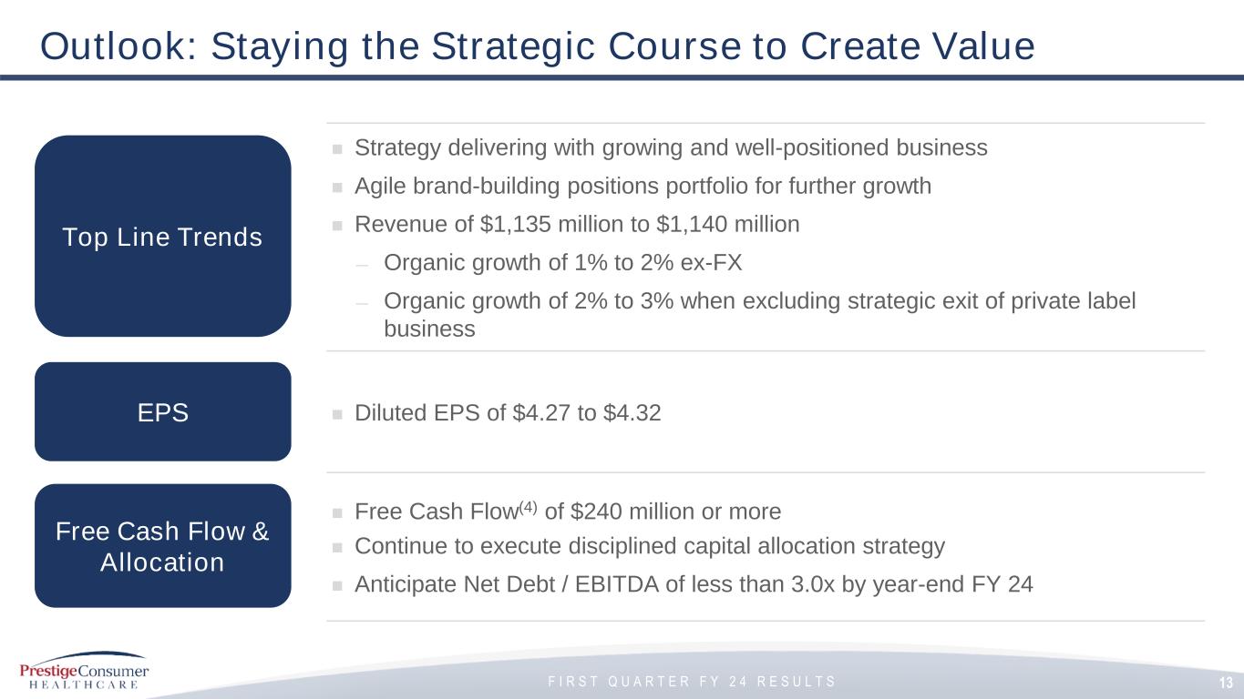 Ron Lombardi, Chief Executive Officer, stated, “Our strong start to fiscal ’24 is fueled by robust growth in multiple categories such as Dermatological and Gastrointestinal, and highlights the impact of our long-standing brand-building across our diverse portfolio. Meanwhile, we continued to generate strong profitability and free cash flow that allowed us to reduce our leverage to 3.2x at the end of Q1, even with our $25 million share repurchase that drove additional shareholder value.”