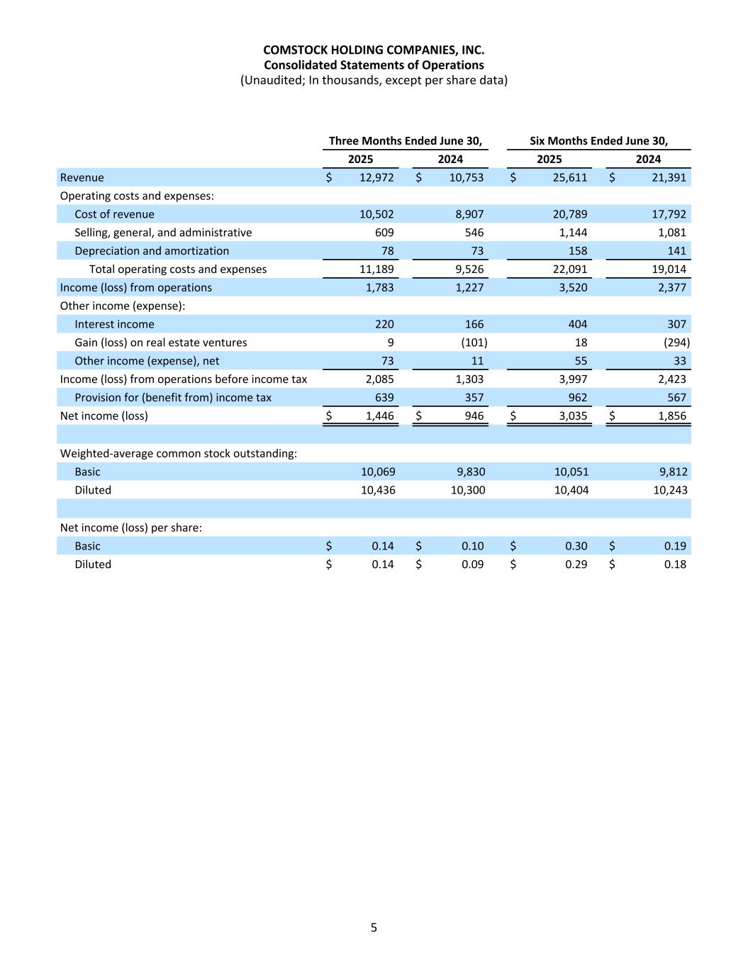 Comstock Holding Companies, Inc.