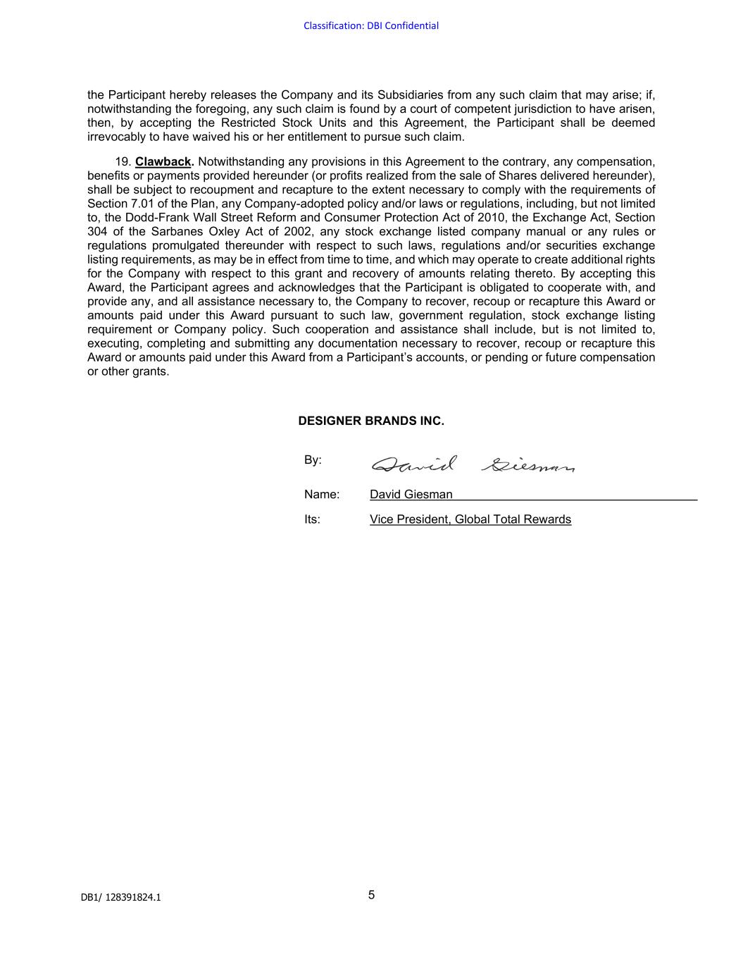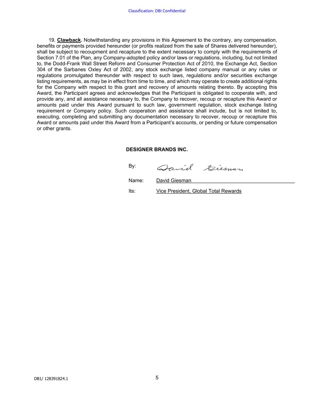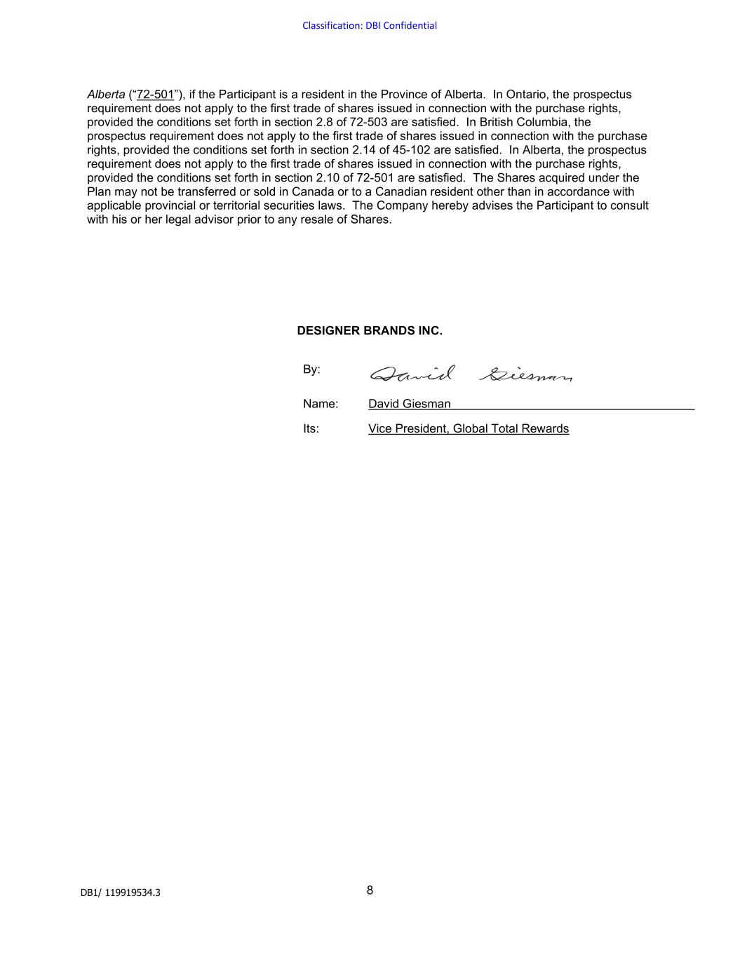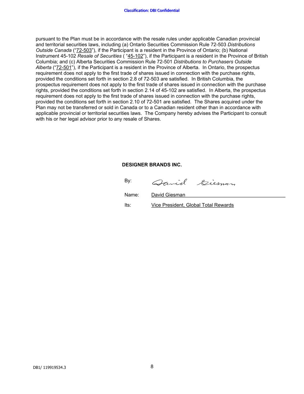 | DESIGNER BRANDS INC. |