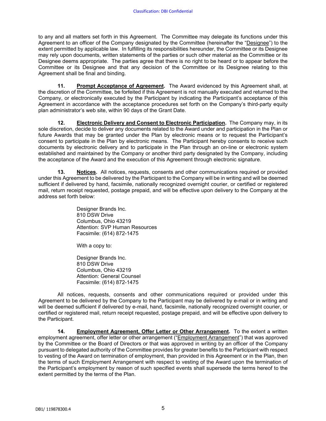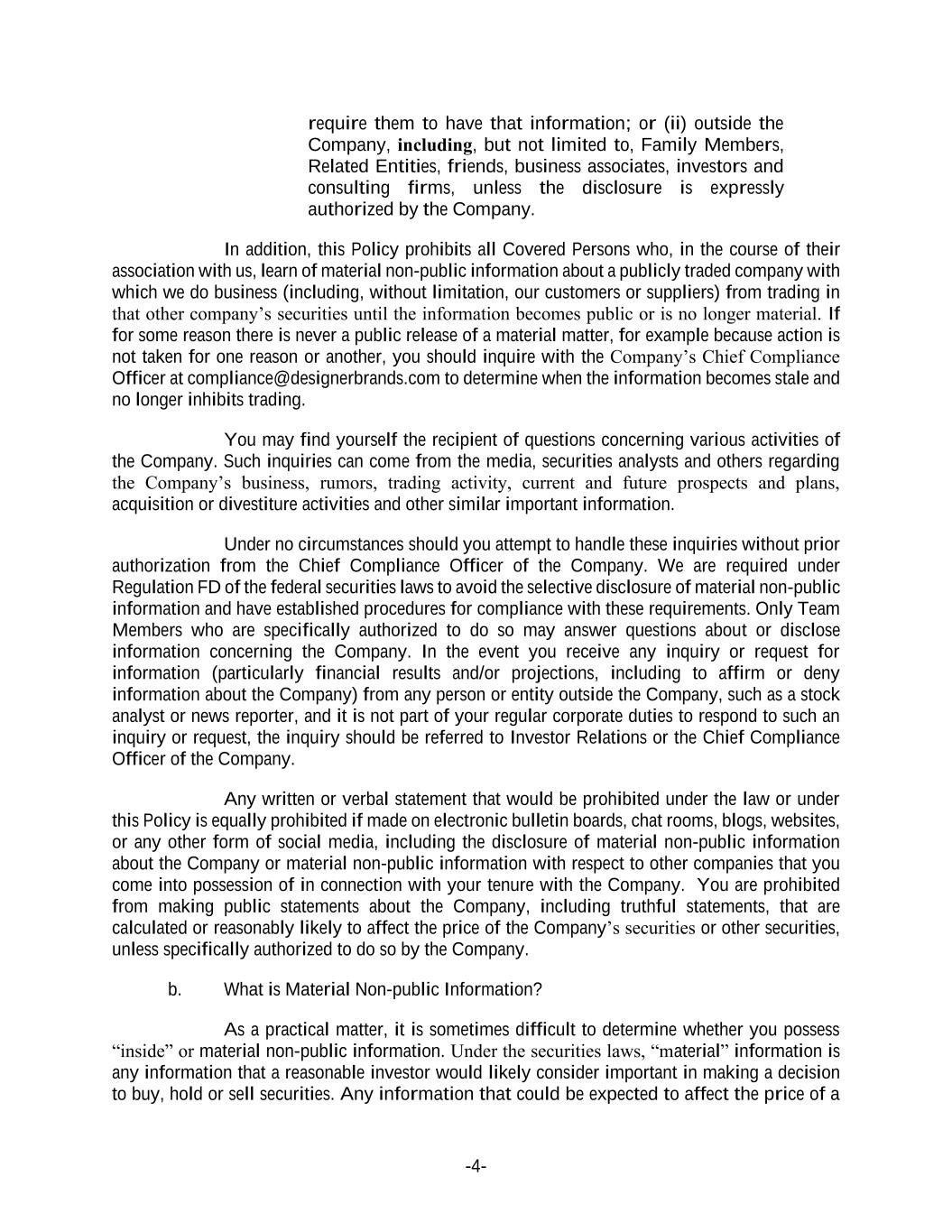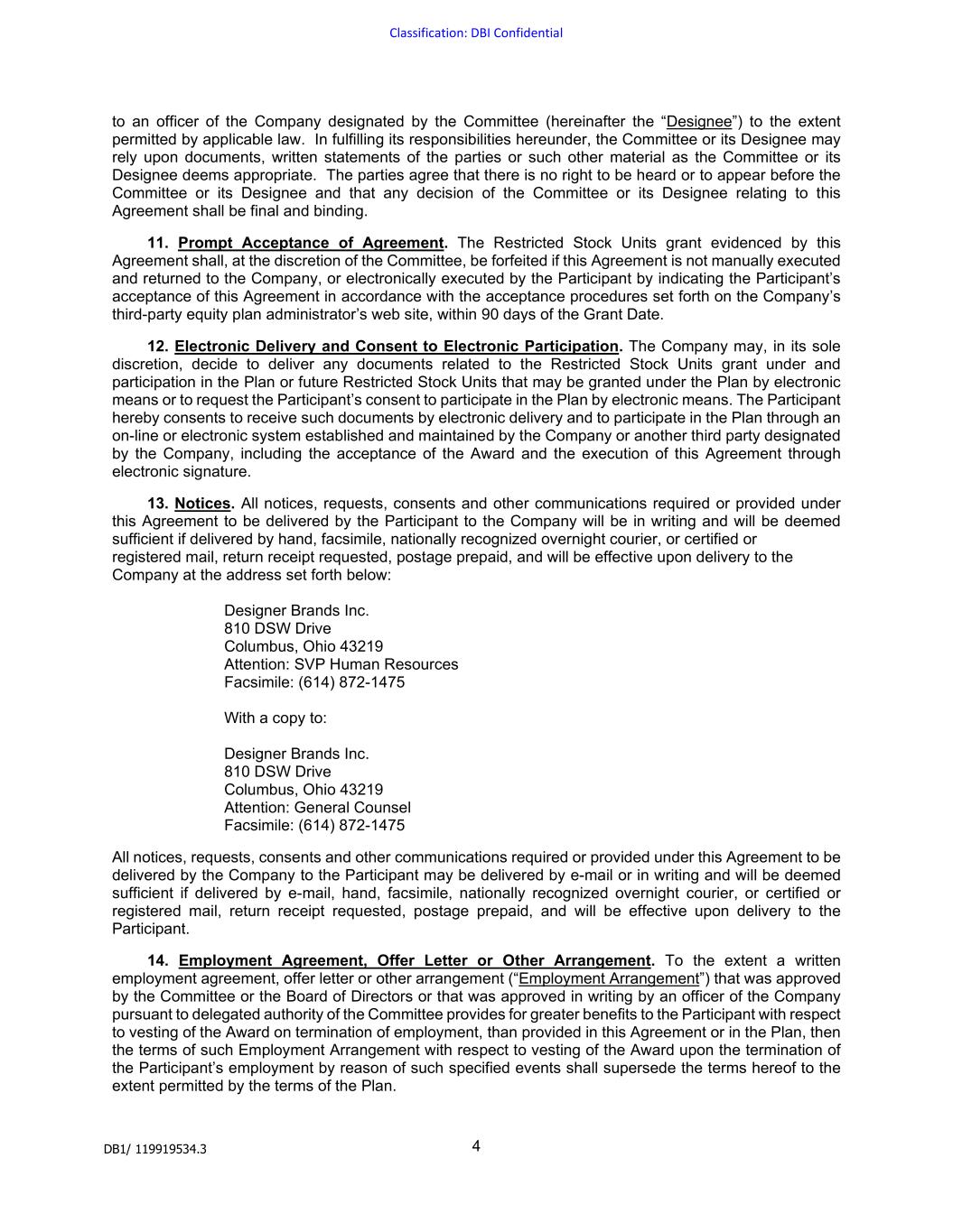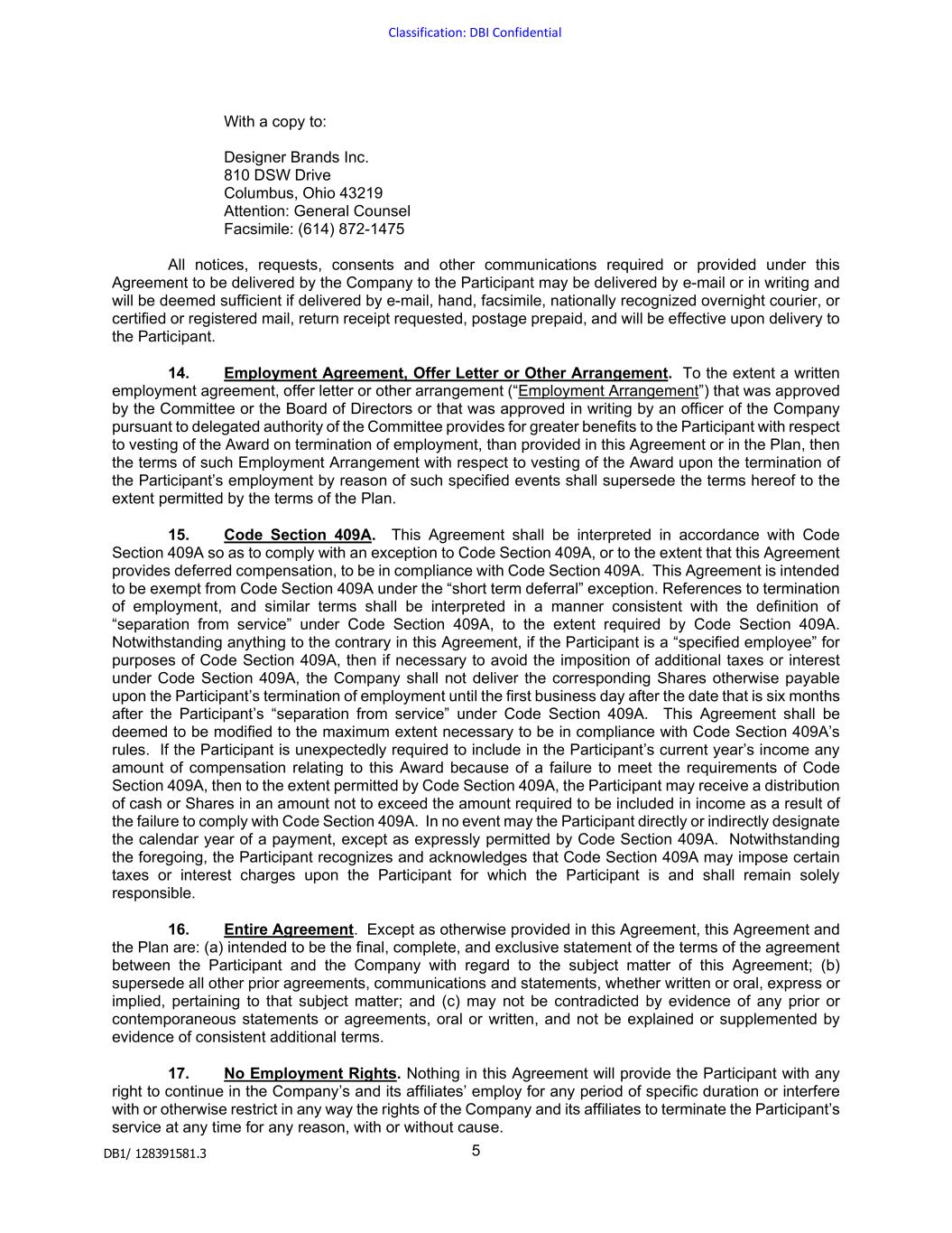 | DESIGNER BRANDS INC. |