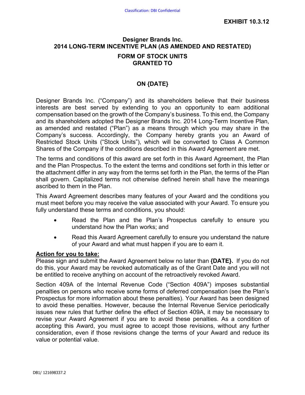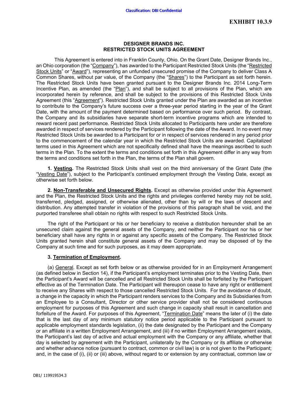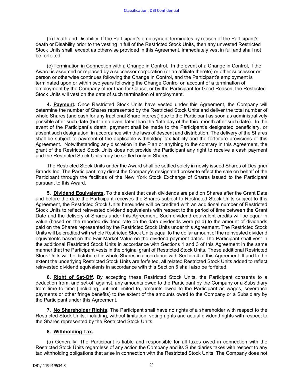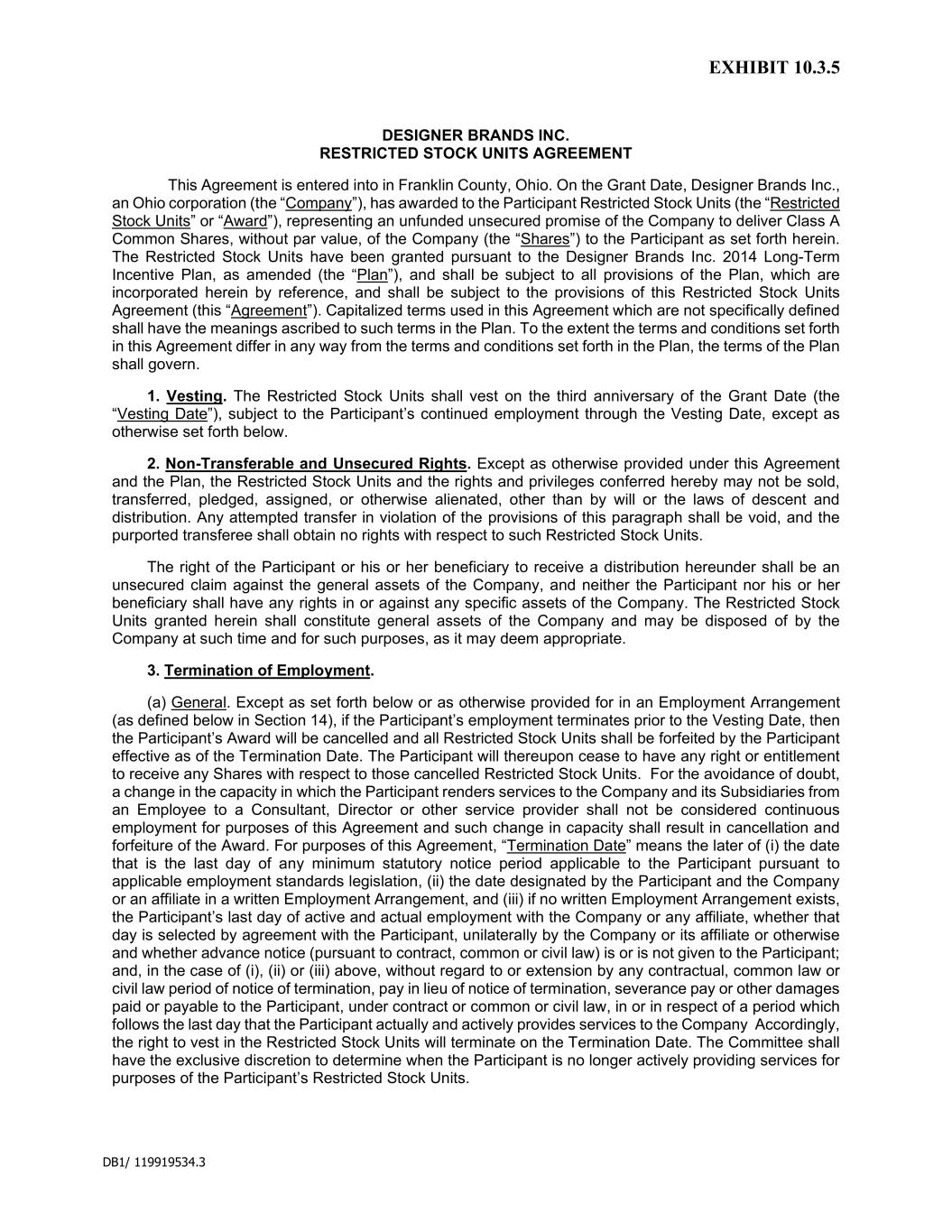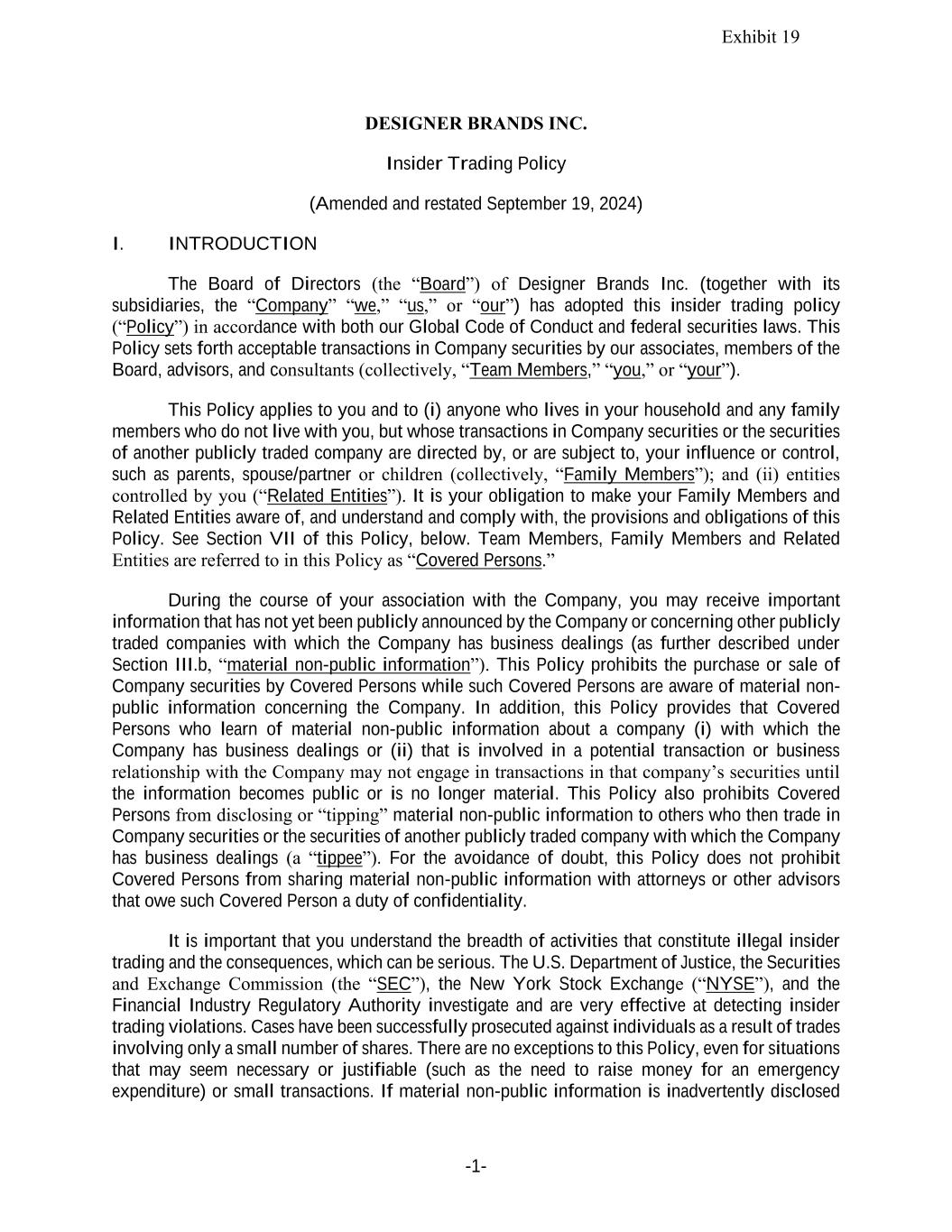 | DESIGNER BRANDS INC. |