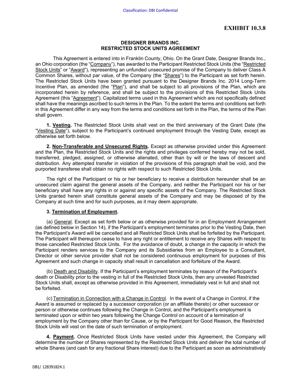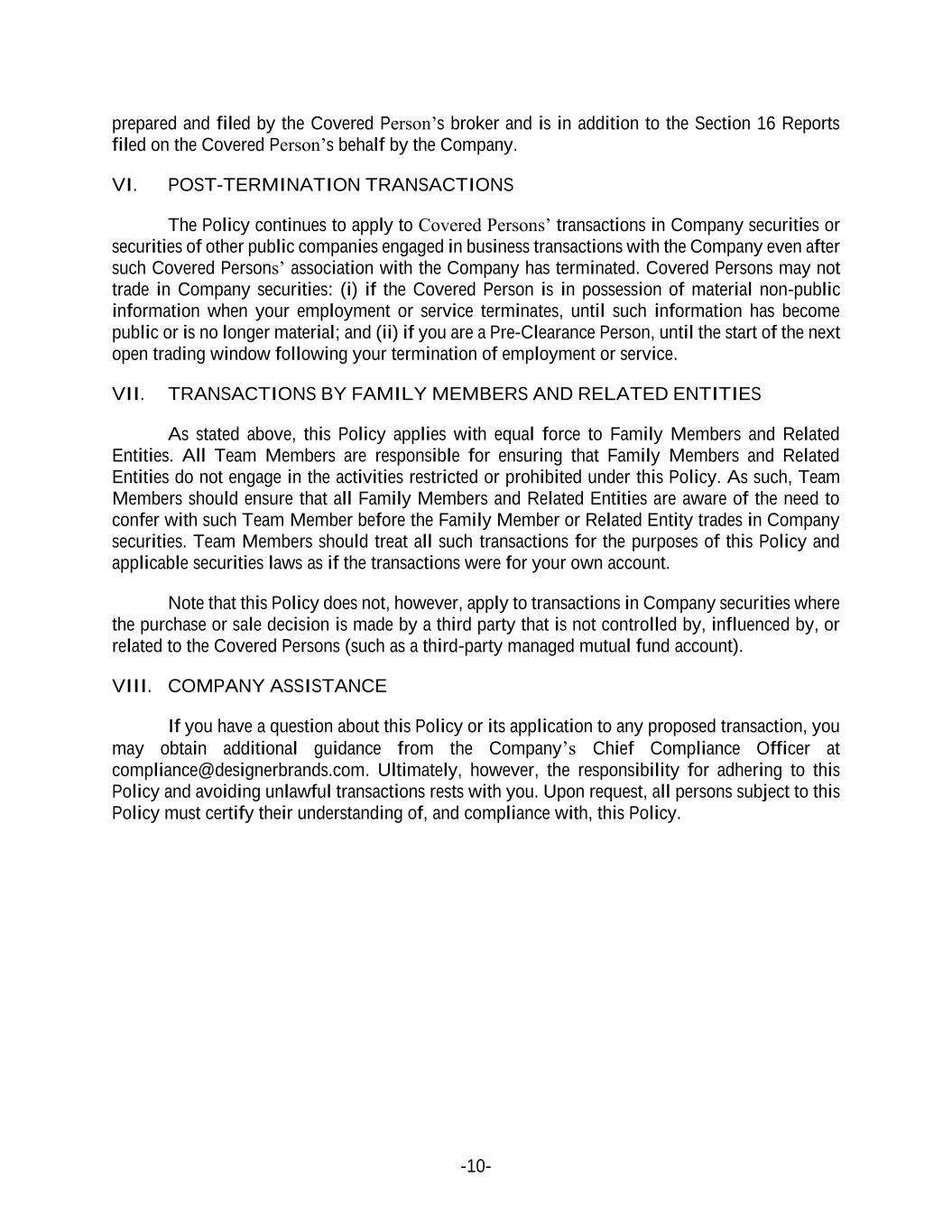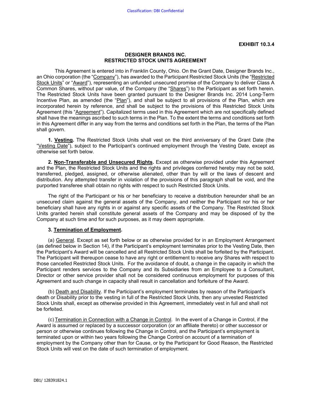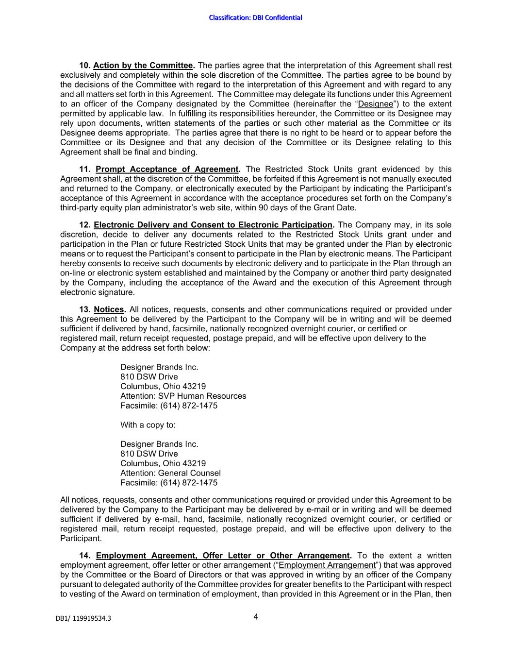 | DESIGNER BRANDS INC. |