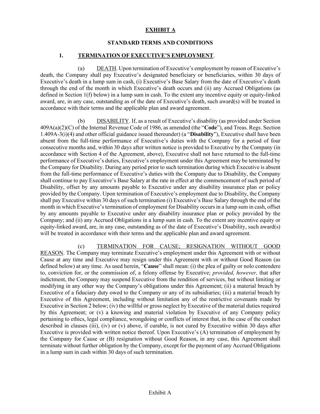 退職金。シェンケル氏が理由なく (死亡または障害を理由とする場合を除く)、または正当な理由によりエクスペディアから解雇された場合 (以下、それぞれを「適格解雇」といいます)、シェンケル氏は離職証明書を締結し撤回せず、以下に記載する制限条項を遵守することを条件とします:
