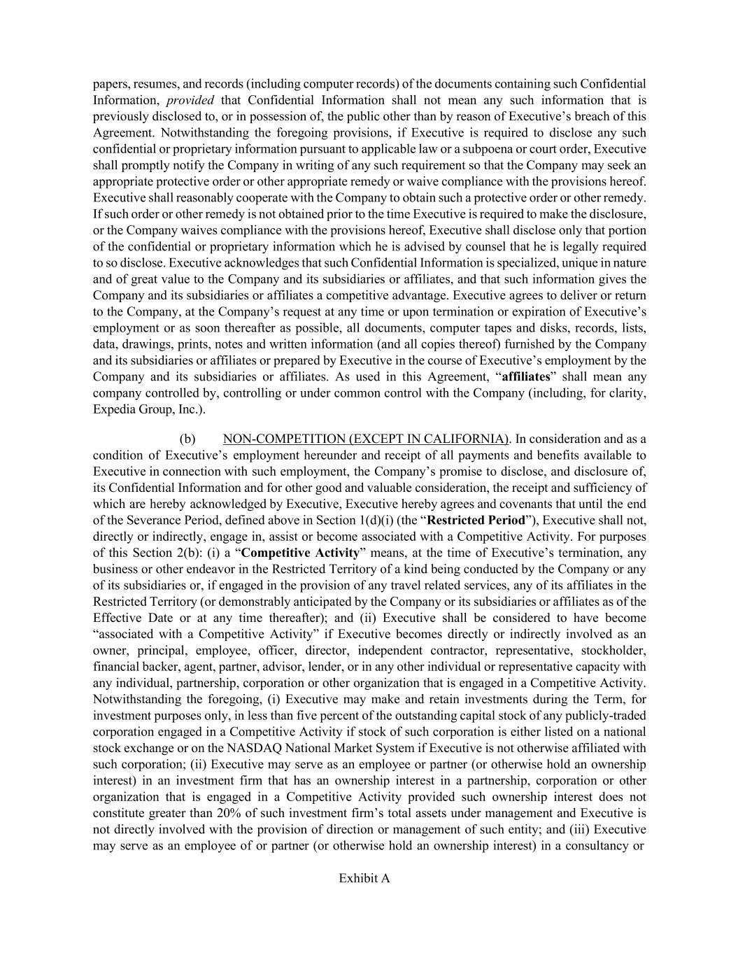 制限条項。カリフォルニア州を除き、シェンケル氏は解雇後 12 ヶ月間、いかなる理由であれ、当社と競合すること、およびエクスペディアの従業員やビジネス パートナーを勧誘することを制限されます。