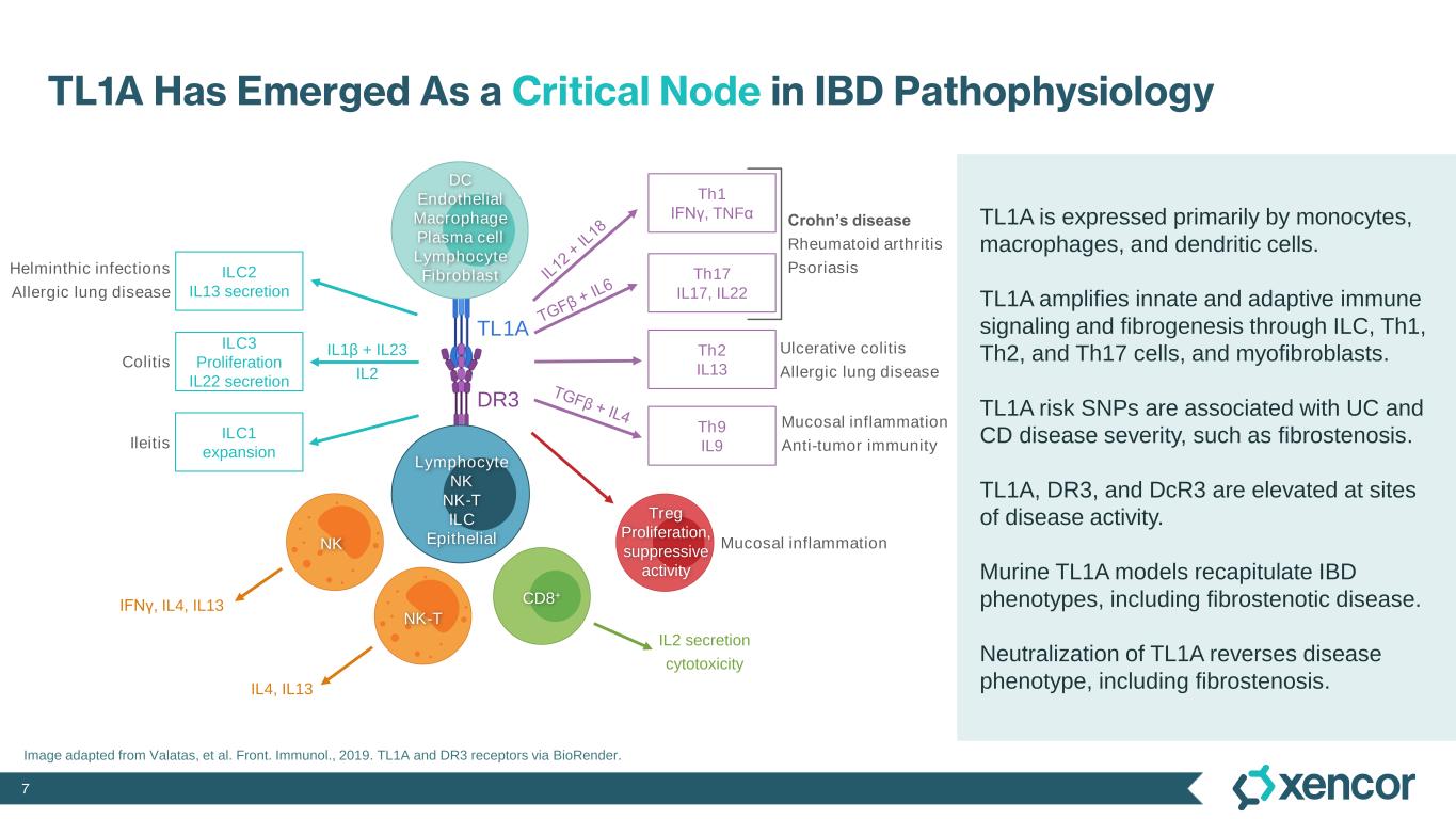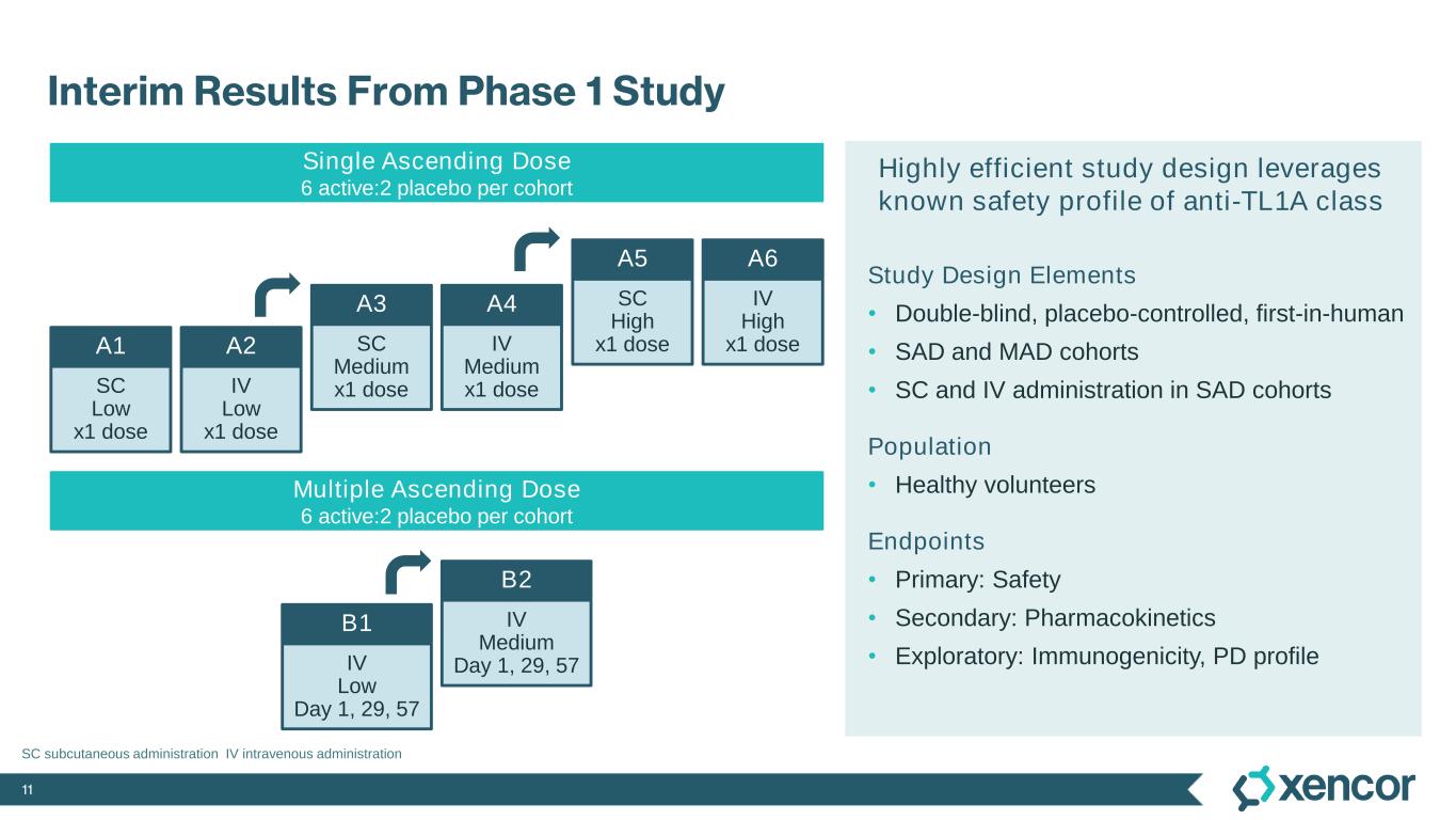 "Our Phase 1 data for XmAb942 validate our design goals for a best-in-class anti-TL1A therapy, combining high potency with less frequent dosing to potentially improve clinical outcomes and convenience for patients living with inflammatory bowel disease," said Bassil Dahiyat, Ph.D., president and chief executive officer at Xencor. "We are excited to start our Phase 2b XENITH-UC trial later this year to efficiently support dose selection for pivotal studies, and we are poised to select our TL1A x IL23p19 bispecific lead candidate for an anticipated Phase 1 start in 2026. These and other milestones across our clinical portfolio are supported by our strong cash position." The Phase 1 study of XmAb942 in healthy volunteers is a randomized, double-blind, placebo-controlled, dose-escalation trial, exploring intravenous (IV) and subcutaneous (SC) dose administration, at three escalating dose levels.