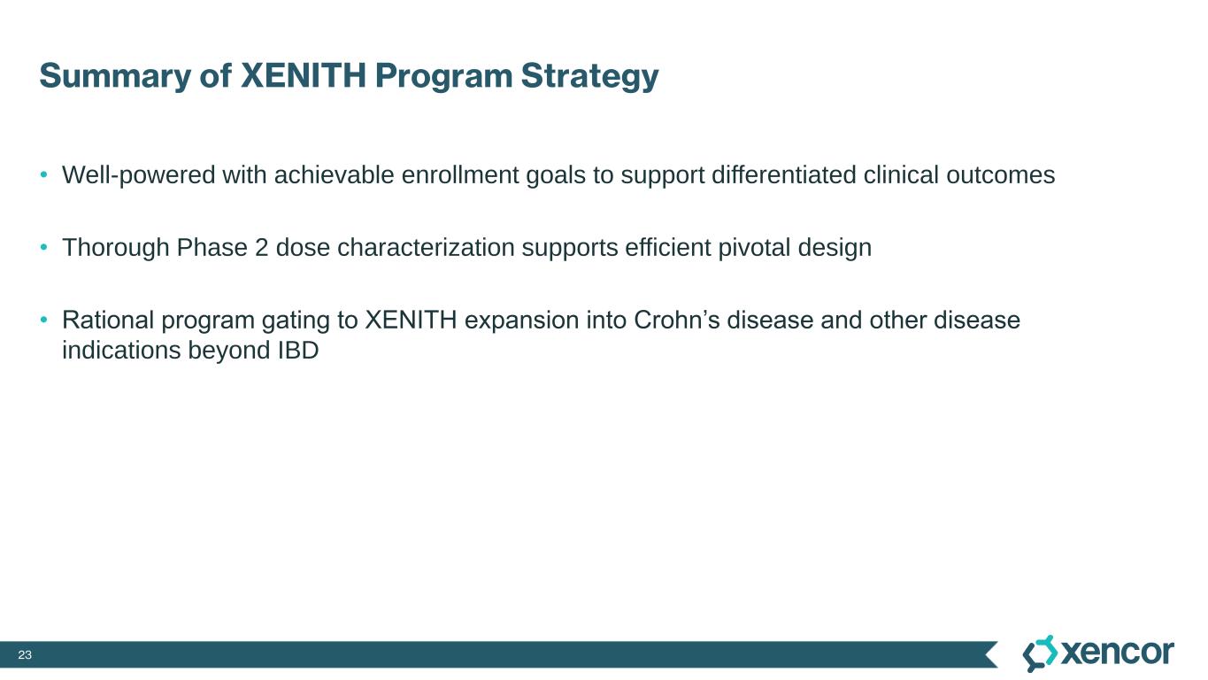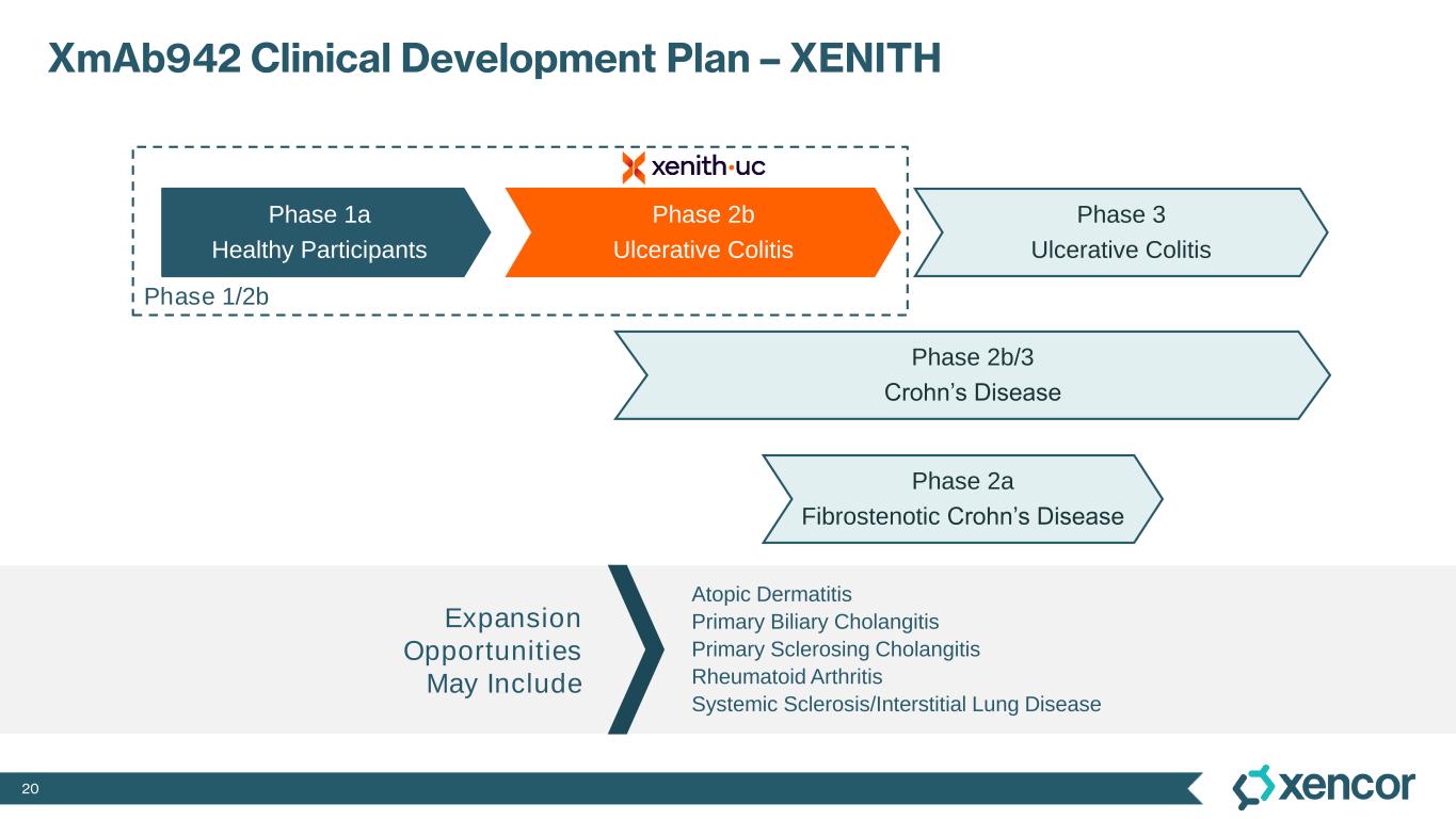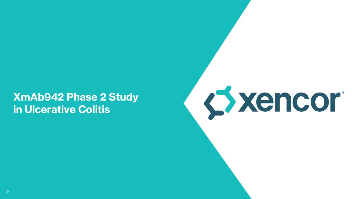 Based on these positive interim results, Xencor is initiating the XENITH clinical program, advancing XmAb942 into a Phase 2b study in patients with moderate-to-severely active UC (XENITH-UC), with the expected study start in the second half of 2025.