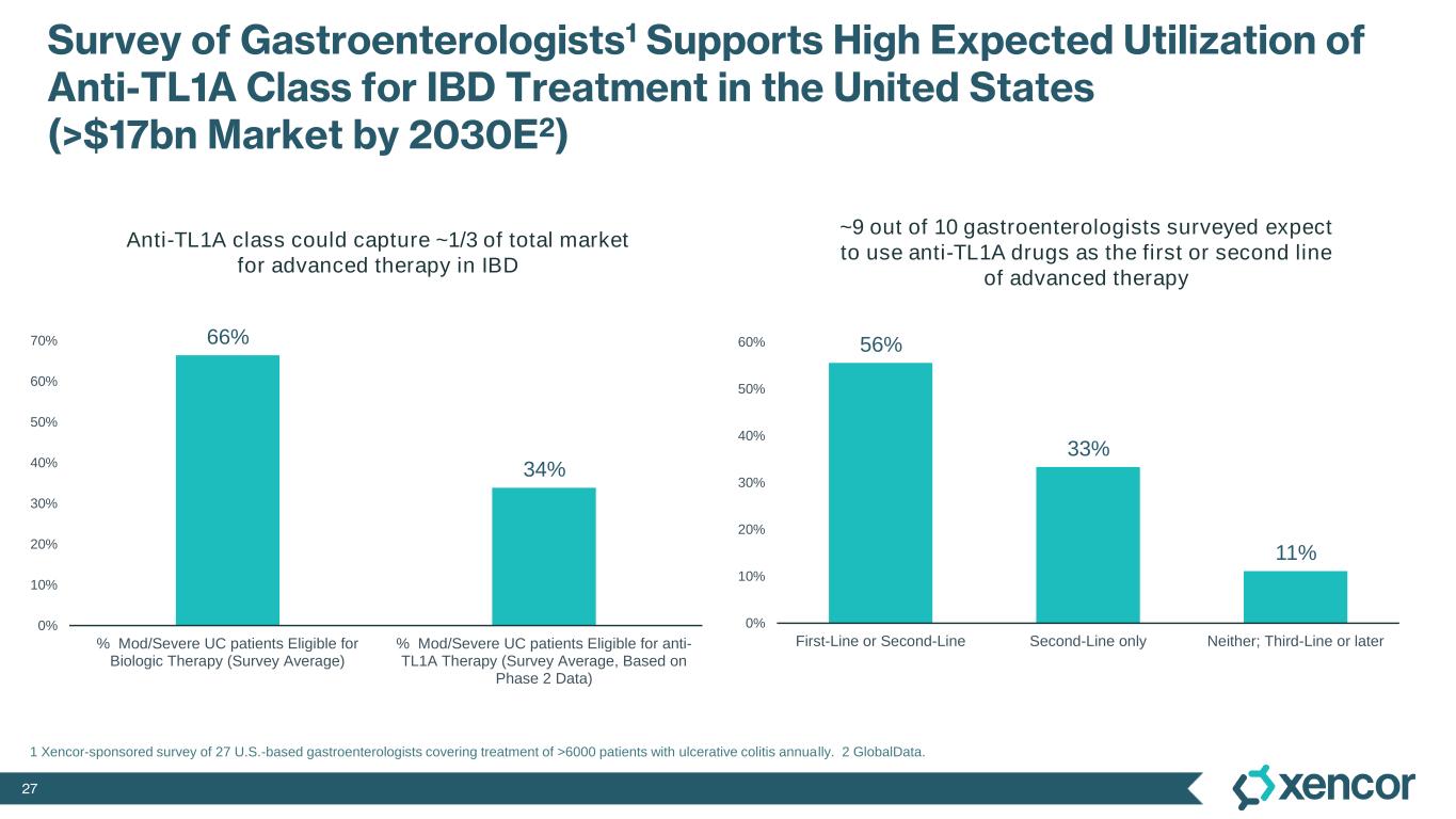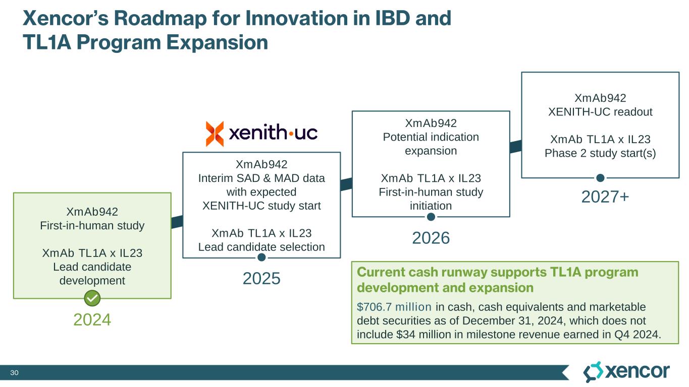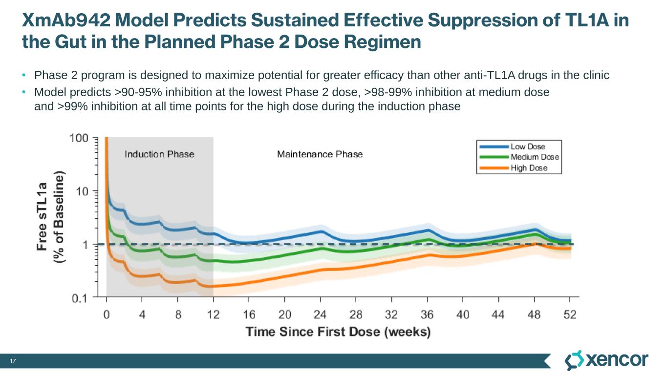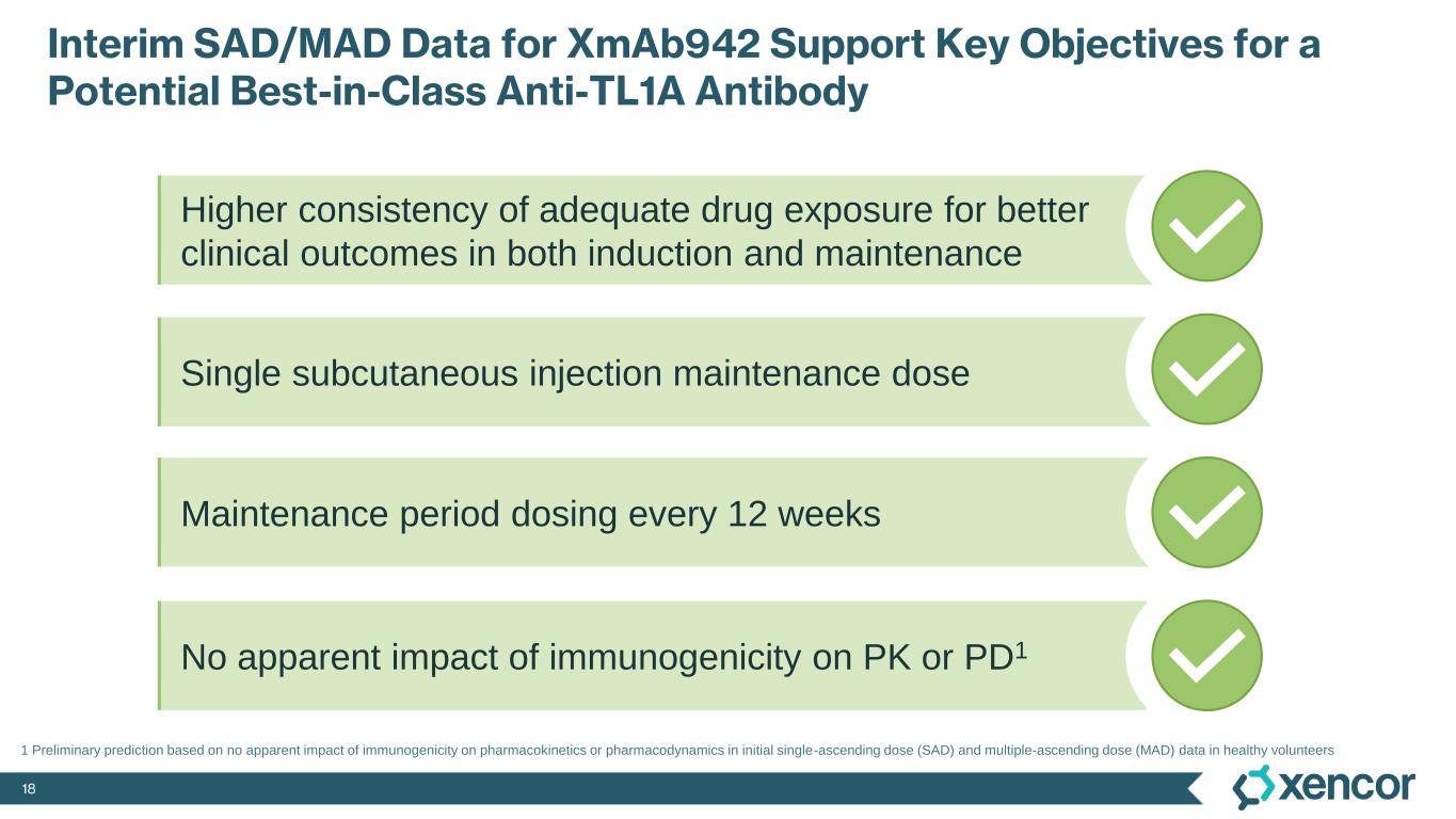 Based on these positive interim results, Xencor is initiating the XENITH clinical program, advancing XmAb942 into a Phase 2b study in patients with moderate-to-severely active UC (XENITH-UC), with the expected study start in the second half of 2025.