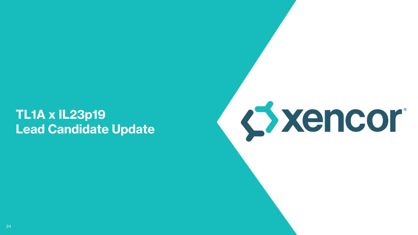 Lead selection for Xencor’s XmAb TL1A x IL23p19 bispecific antibody continues to advance. New in vitro studies show that several lead candidates match the target inhibition potency of commercial monospecific antibodies, but in a simple bispecific immunoglobulin G (IgG) format. Currently, these candidates are in final lead selection studies and manufacturing, in parallel, to prepare for the first-in-human study planned for 2026.