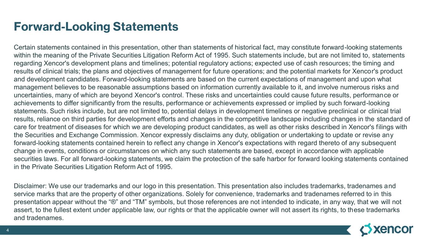 Certain statements contained in this press release may constitute forward-looking statements within the meaning of applicable securities laws. Forward-looking statements include statements that are not purely statements of historical fact, and can generally be identified by the use of words such as “potential,” “can,” “will,” “plan,” “may,” “could,” “would,” “expect,” “anticipate,” “seek,” “look forward,” “believe,” “committed,” “investigational,” “indicates,” “supports,” and similar terms, or by express or implied discussions relating to Xencor’s business, including, but not limited to, statements regarding expectations for clinical progress, planned presentations of clinical data, planned and in process clinical trials, the quotations from Xencor's president and chief executive officer, and other statements that are not purely statements of historical fact. Such statements are made on the basis of the current beliefs, expectations, and assumptions of the management of Xencor and are subject to significant known and unknown risks, uncertainties and other factors that may cause actual results, performance or achievements and the timing of events to be materially different from those implied by such statements, and therefore these statements should not be read as guarantees of future performance or results. Such risks include, without limitation, the risks associated with the process of discovering, developing, manufacturing and commercializing drugs that are safe and effective for use as human therapeutics and other risks, including the ability of publicly disclosed preliminary clinical trial data to support continued clinical development and regulatory approval for specific treatments and the risks, uncertainties and other factors described under the heading “Risk Factors” in Xencor's annual report on Form 10-K for the year ended December 31, 2024 as well as Xencor's subsequent filings with the Securities and Exchange Commission. You are cautioned not to place undue reliance on these forward-looking statements, which speak only as of the date hereof. This caution is made under the safe harbor provisions of the Private Securities Litigation Reform Act of 1995, as amended to date. All forward-looking statements are qualified in their entirety by this cautionary statement and Xencor undertakes no obligation to revise or update these forward-looking statements to reflect events or circumstances after the date hereof, except as required by law.