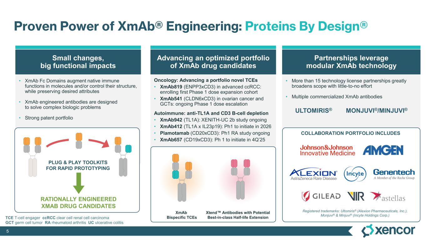 Xencor is a clinical-stage biopharmaceutical company developing engineered antibodies for the treatment of patients with cancer and autoimmune diseases. More than 20 candidates engineered with Xencor's XmAb® technology are in clinical development, and multiple XmAb medicines are marketed by partners. Xencor's XmAb engineering technology enables small changes to a protein’s structure that result in new mechanisms of therapeutic action. For more information, please visit www.xencor.com.