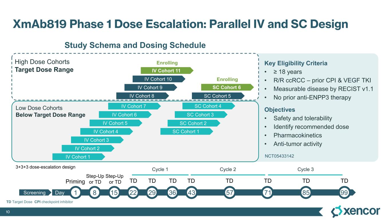“We are excited to be developing XmAb819 as a novel first-in-class ENPP3 T-cell engager that could potentially offer a much-needed new therapeutic modality for patients with advanced clear cell renal cell carcinoma and clinicians. In our first clinical presentation of dose-escalation data, XmAb819 demonstrated compelling anti-tumor activity and a well-tolerated safety profile in very heavily pre-treated patients,” said Bassil Dahiyat, Ph.D., president and chief executive officer at Xencor. “We are on-track with our first dose-expansion cohort now selected and are enrolling patients as we continue to dose escalate. We are confident that we will be able to select a recommended Phase 3 dose during 2026 to support the initiation of our first pivotal study in advanced ccRCC during 2027.”