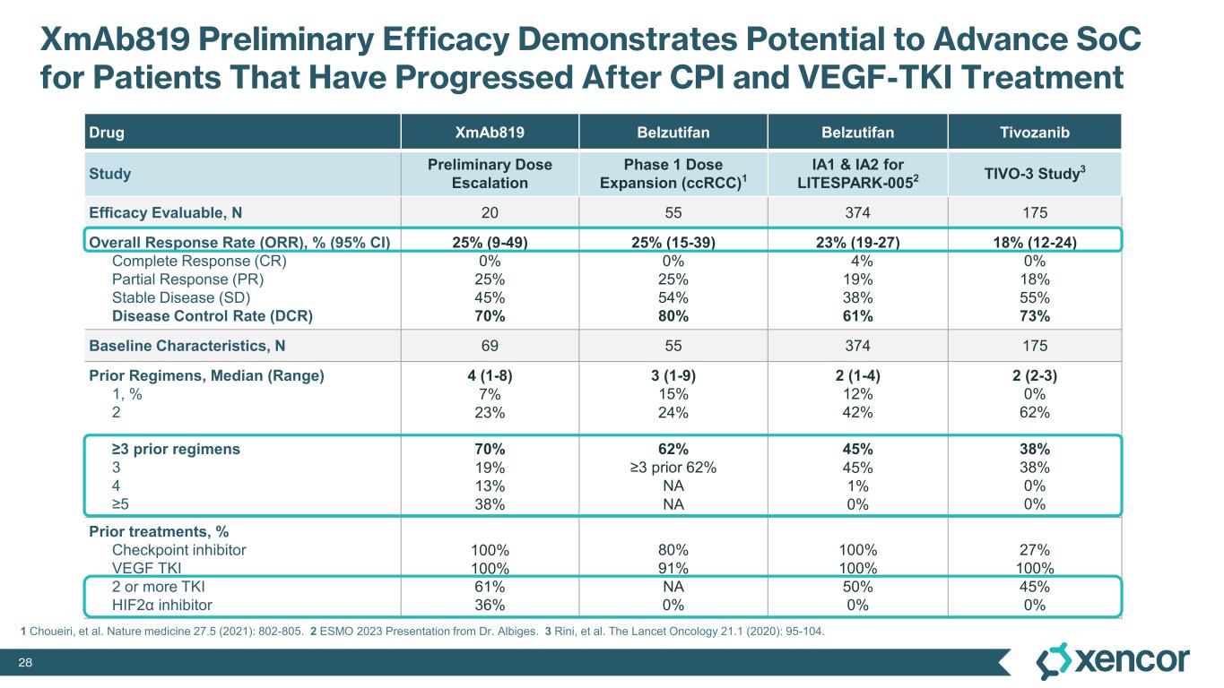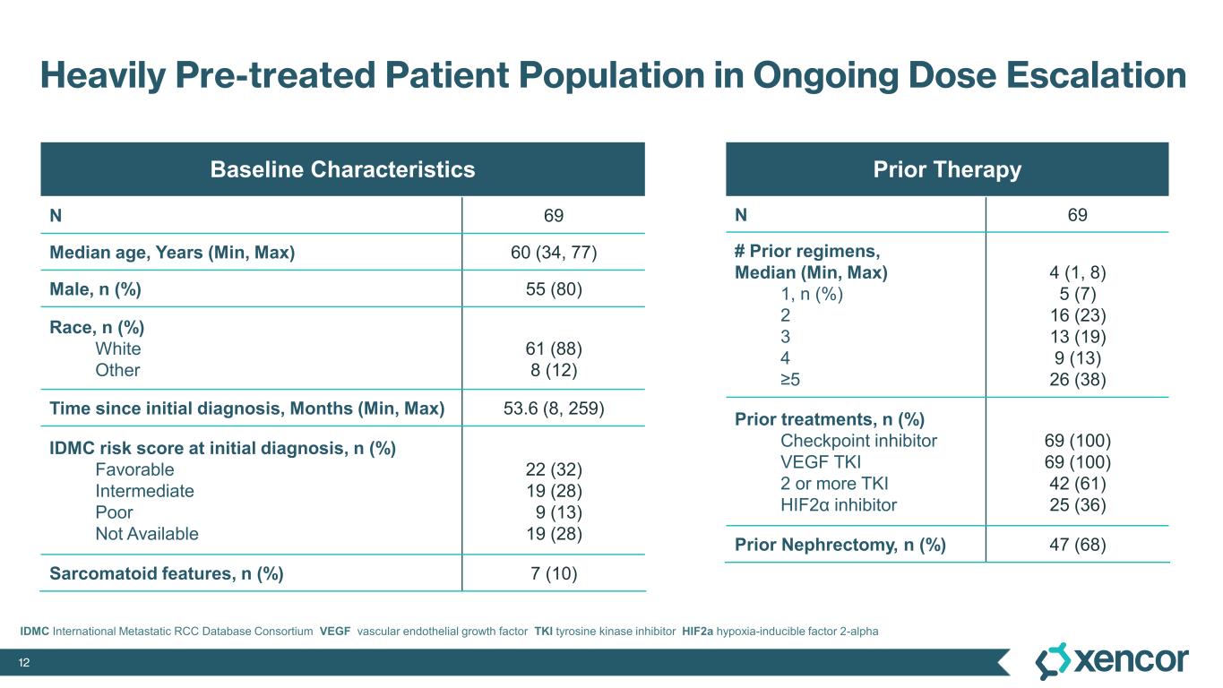 The Phase 1 clinical trial is a multicenter, open-label, dose-escalation and dose-expansion study designed to evaluate XmAb819 as monotherapy in patients with advanced ccRCC. As of the September 19, 2025 data cut-off, 69 patients received XmAb819 across 10 intravenous (IV) dose cohorts and 5 subcutaneous (SC) dose cohorts. Patients received a median of 4 prior lines of therapy (range 1-8). All patients received prior anti-PD1 therapy and prior VEGF-TKI therapy, and 36% of patients were previously treated with a HIF2α inhibitor. Efficacy was assessed by investigators using RECIST v1.1.