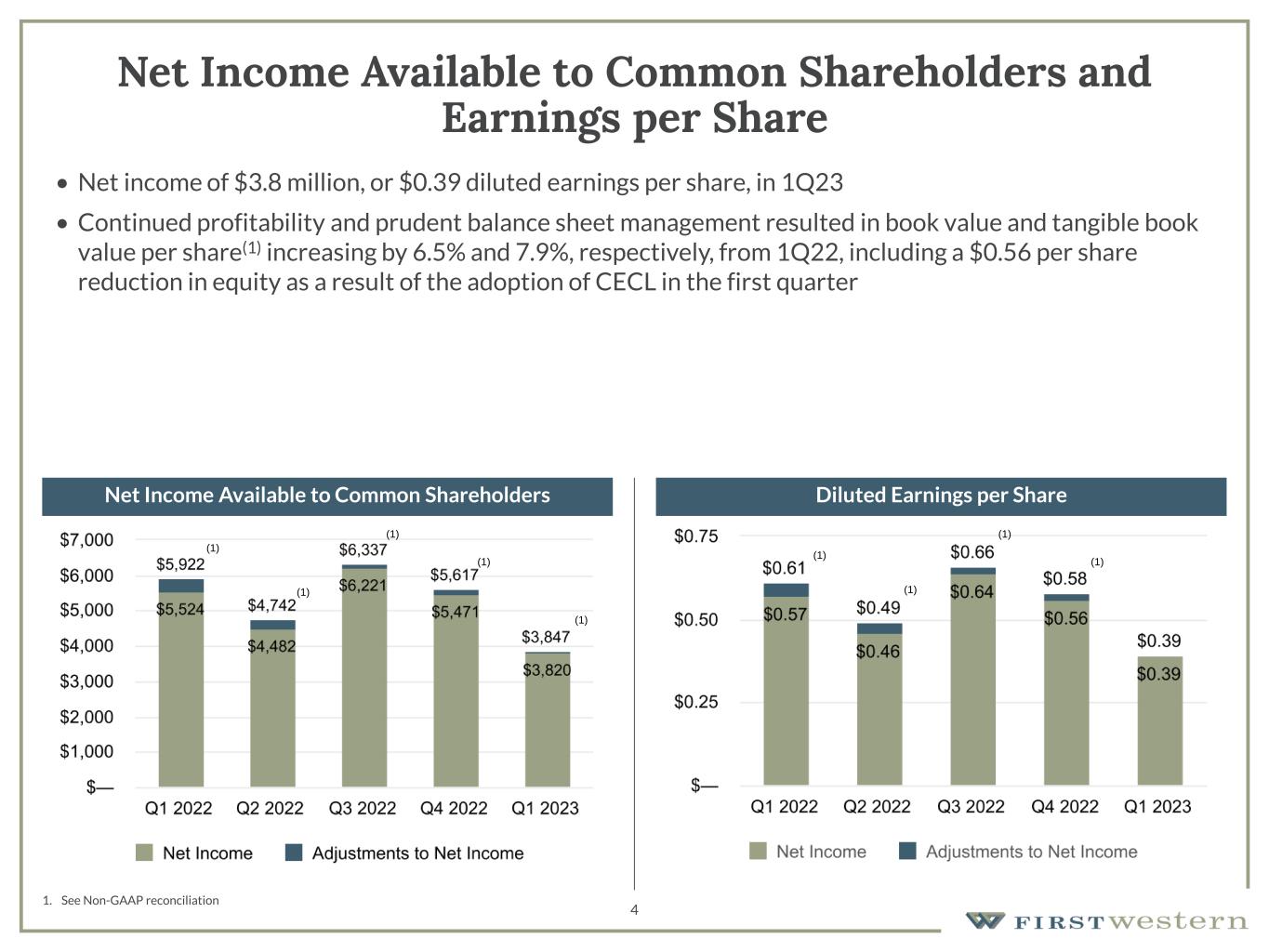 •Net income available to common shareholders of $3.8 million in Q1 2023, compared to $5.5 million in Q4 2022 and $5.5 million in Q1 2022
