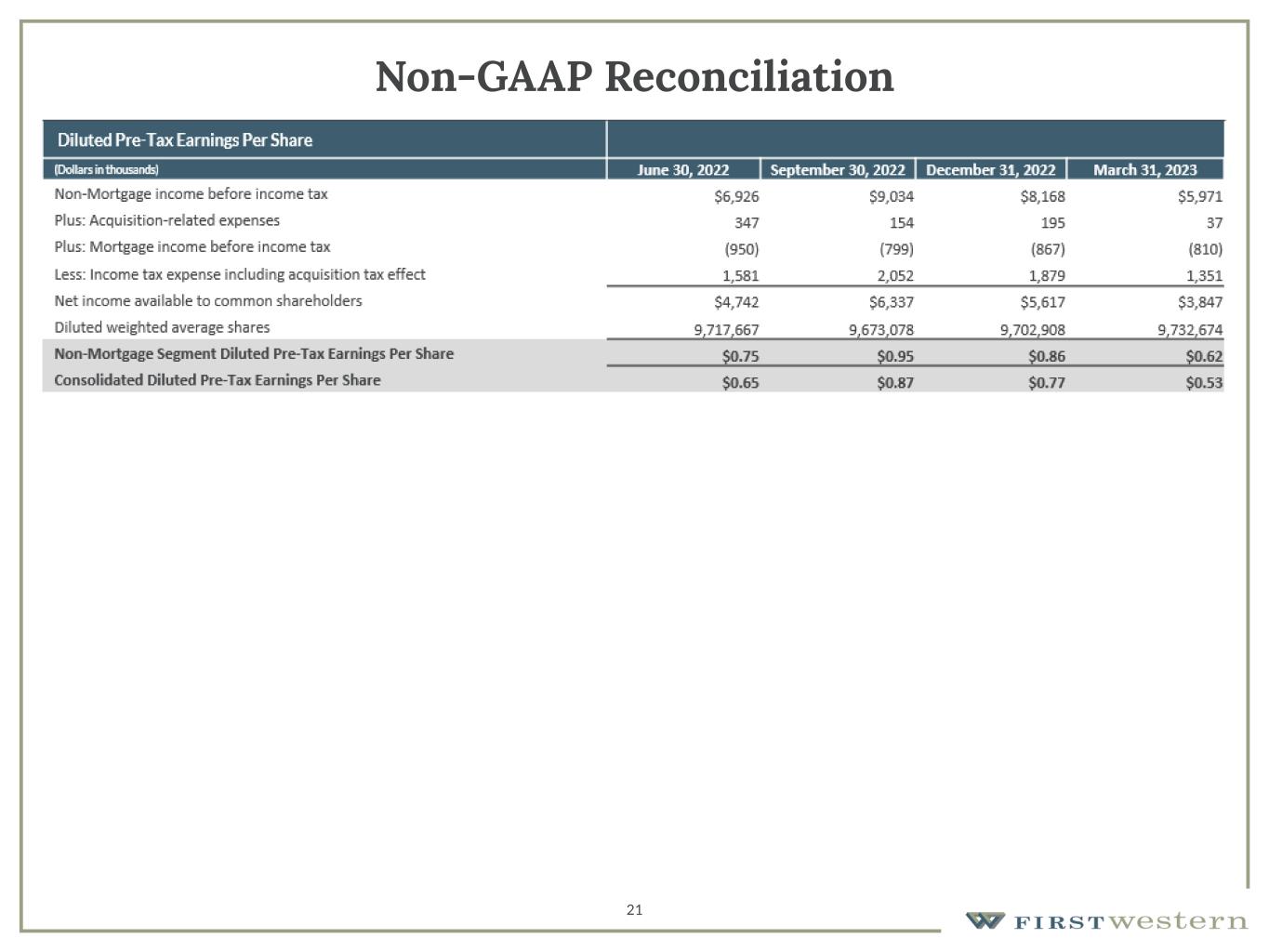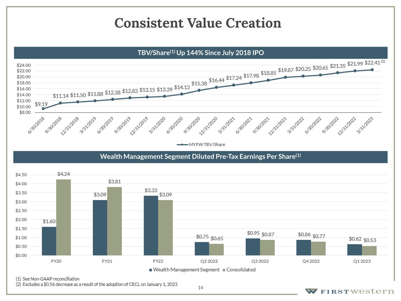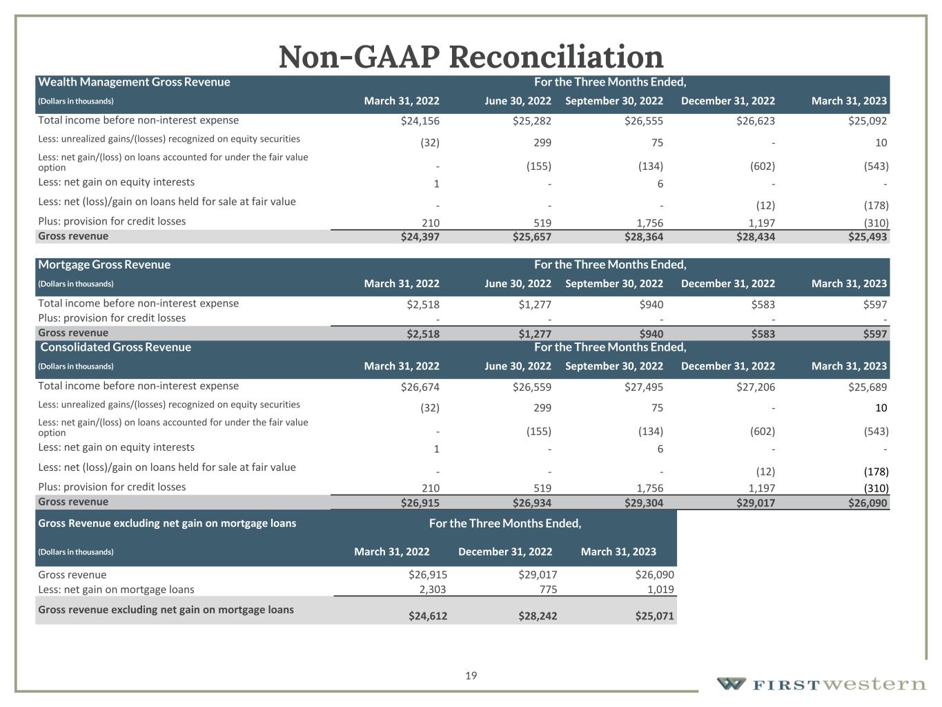 “The fundamentals of our franchise remain very strong with high levels of capital and liquidity, a stable deposit base, exceptional asset quality, and an extremely low level of unrealized losses in our securities portfolio. While prudent risk management will remain our top priority during this period of economic uncertainty, we believe the strength of the balance sheet and franchise we have built will provide us with opportunities to add new clients who are looking to move to a stronger financial institution, which will contribute to our continued long-term profitable growth and additional value creation for our shareholders,” said Mr. Wylie.