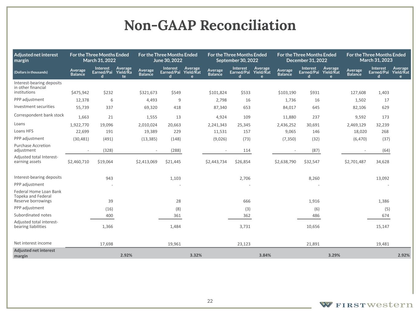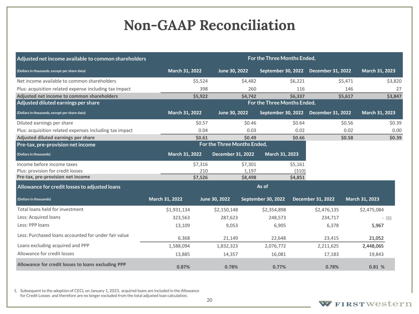 (4)As of March 31, 2023, the adjustment for PPP loans includes acquired PPP loans as acquired loans are no longer removed in calculating adjusted total loans.