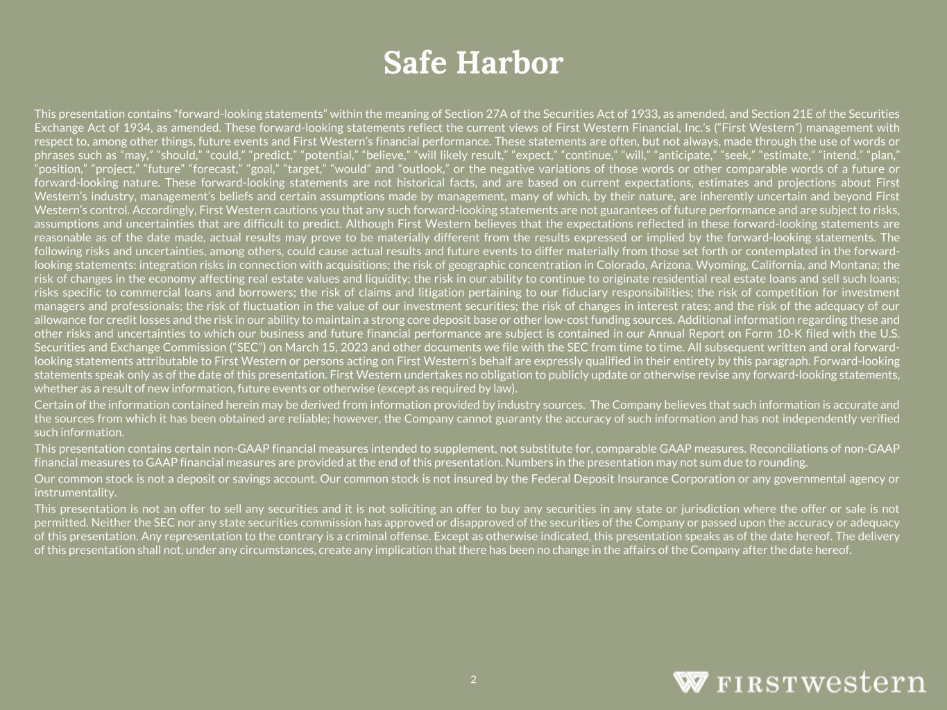 Denver, Colo., January 25, 2024 – First Western Financial, Inc. (“First Western” or the “Company”) (NASDAQ: MYFW), today reported financial results for the fourth quarter ended December 31, 2023.