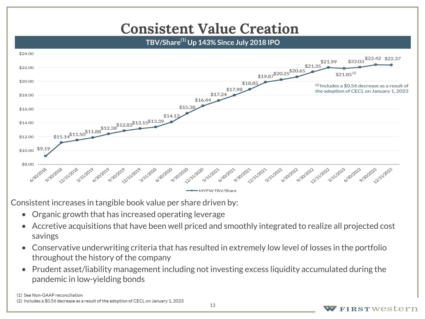 (2)As of December 31, 2023 and September 30, 2023, acquired loans totaling $212.3 million and $216.1 million, respectively, are included in the allowance for credit loss calculation and are therefore not removed in calculating adjusted total loans.