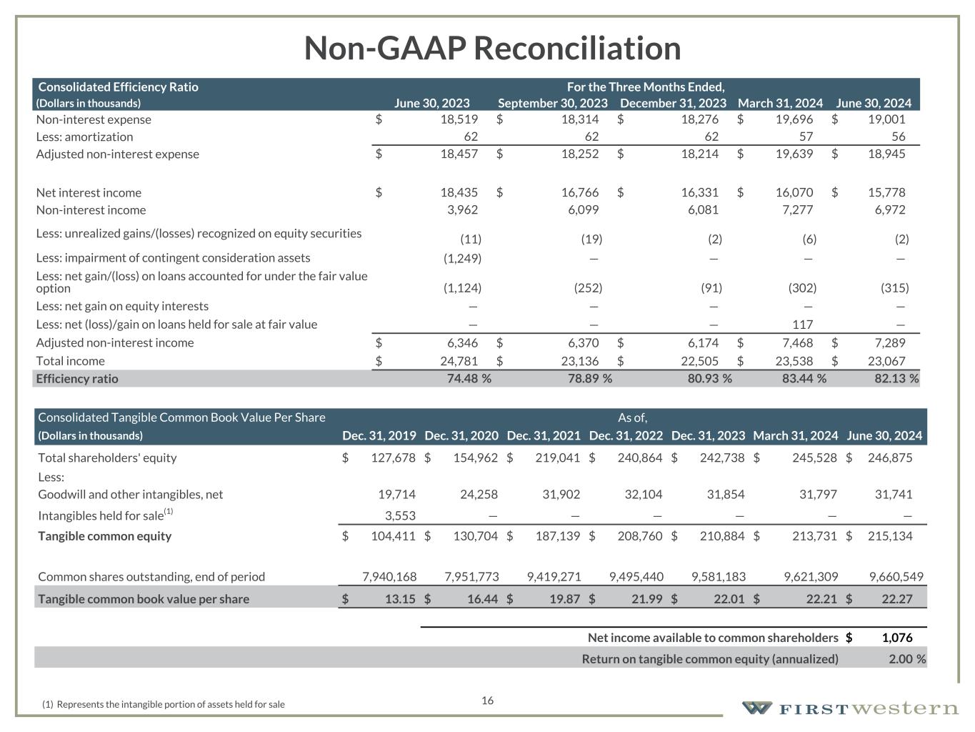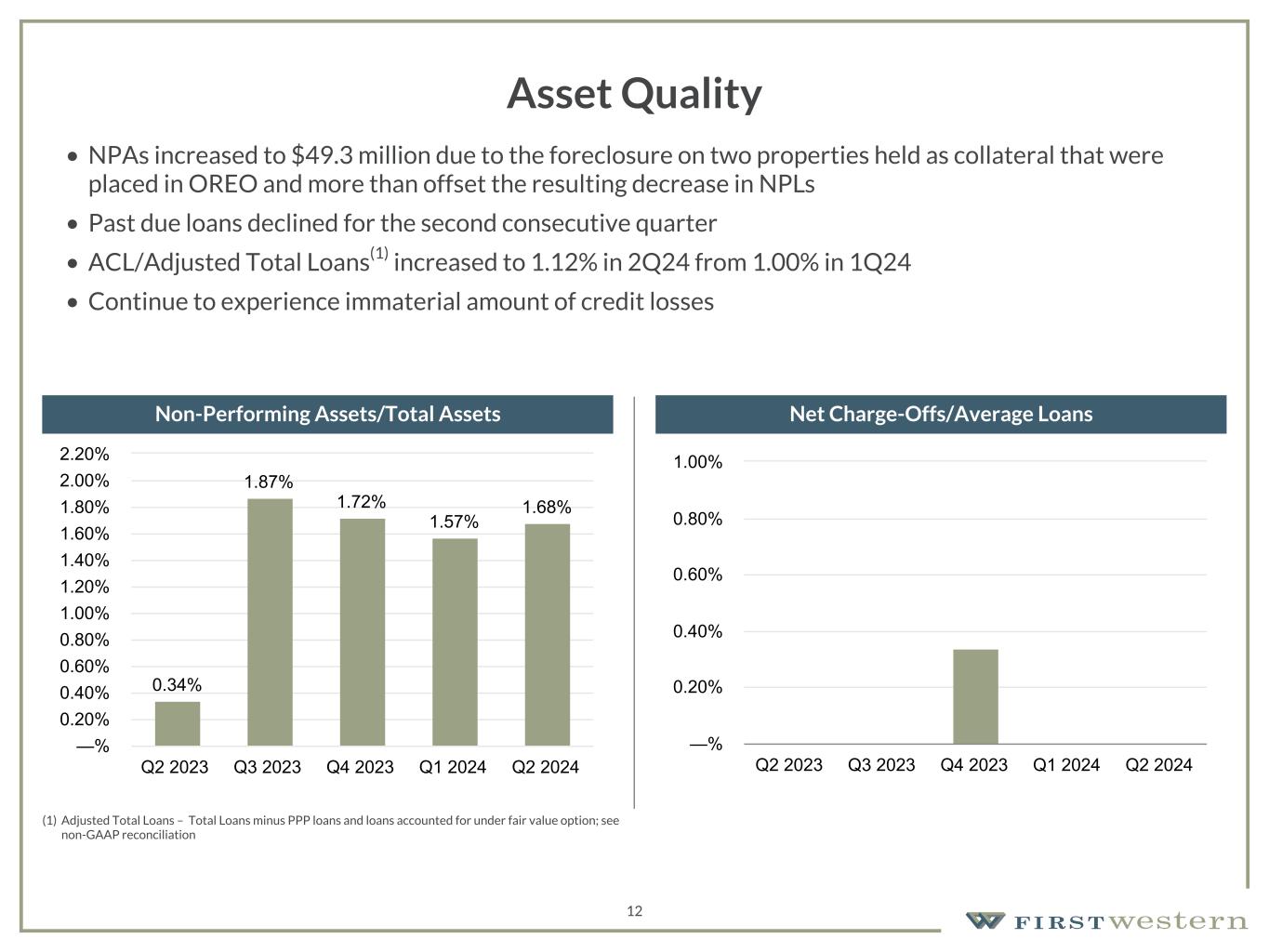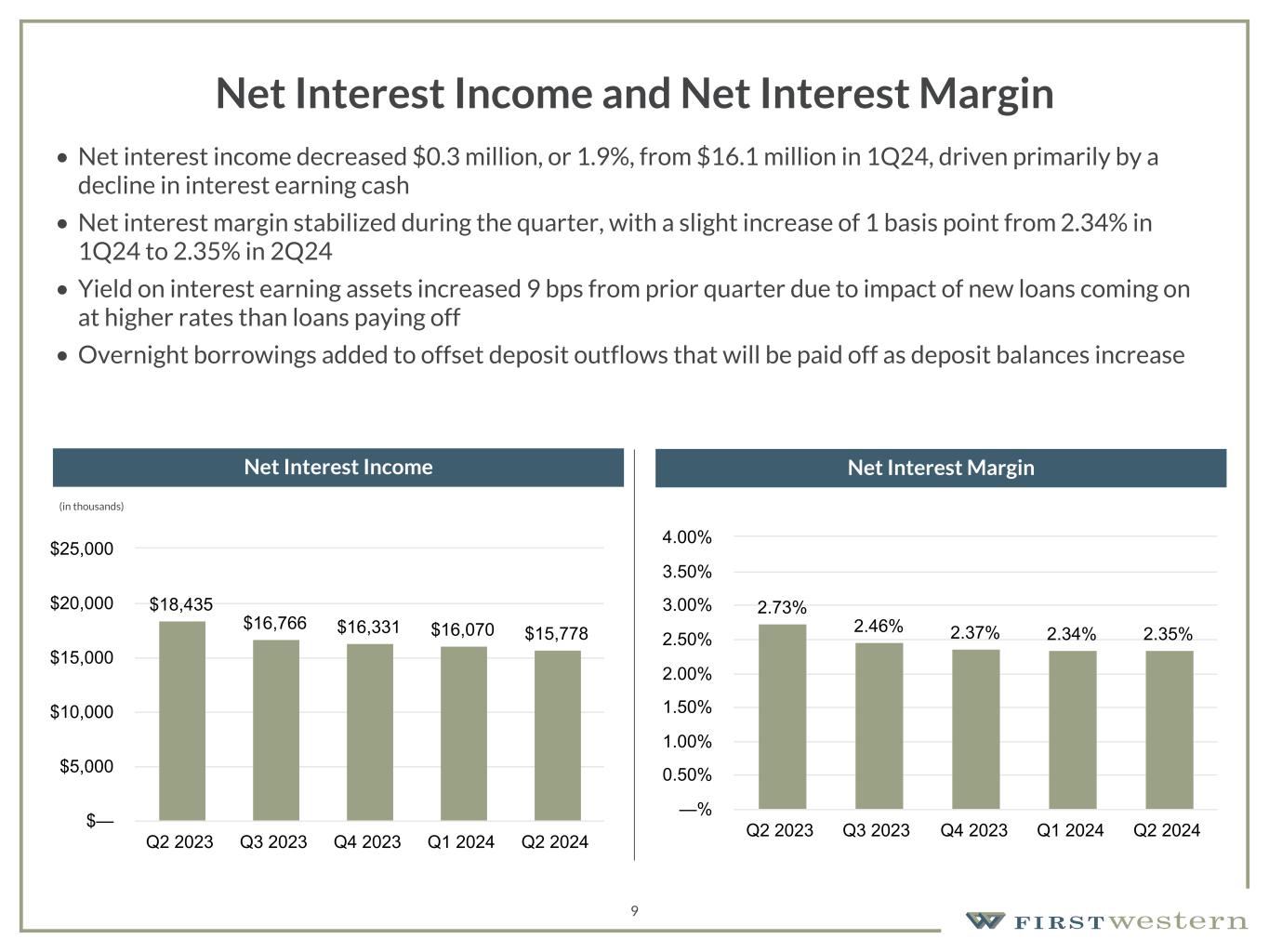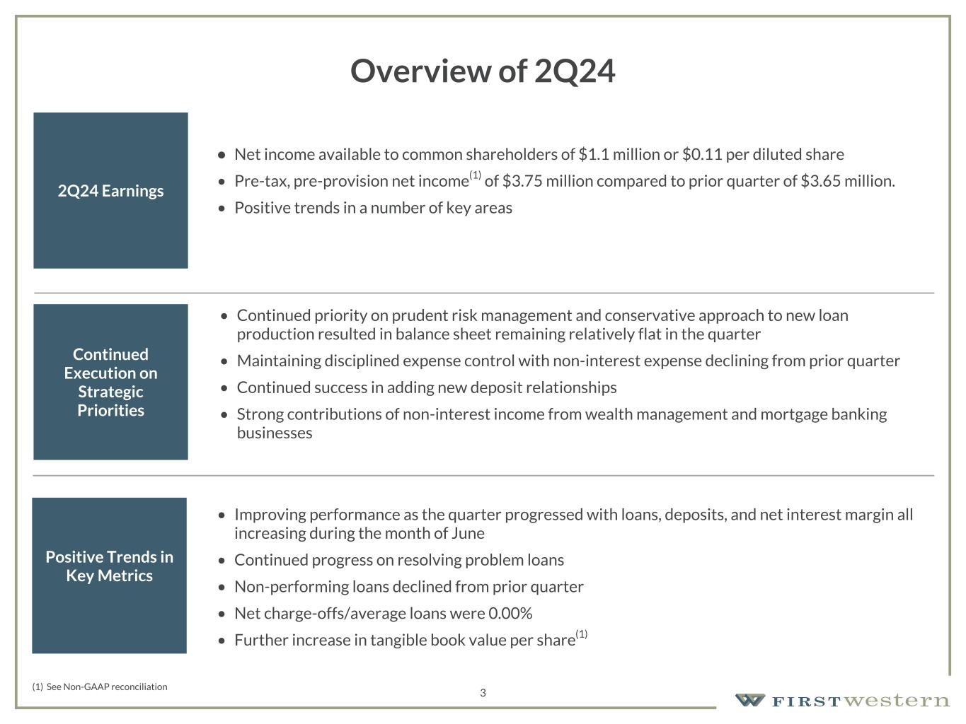 ファースト・ウェスタン社、2024年第2四半期決算を発表