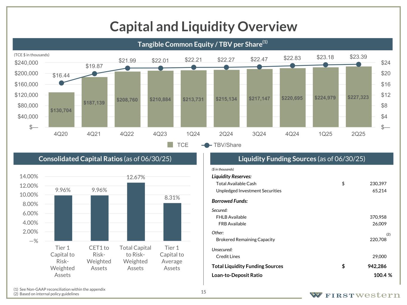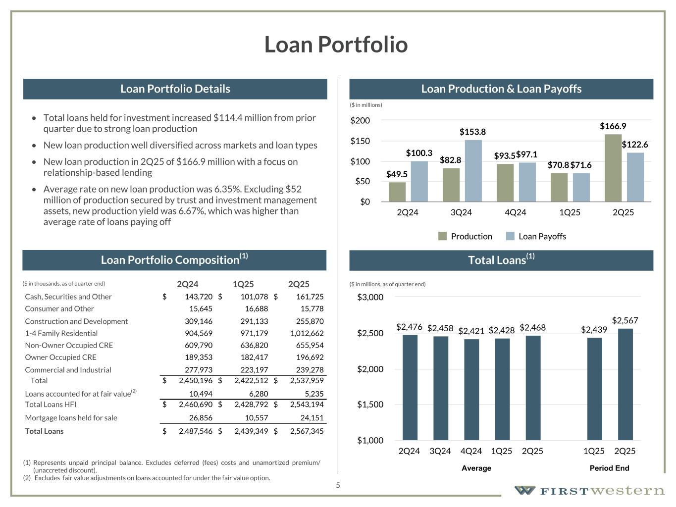 •Total loans increased $115 million, or 4.7%, from $2.43 billion as of Q1 2025 to $2.54 billion as of Q2 2025