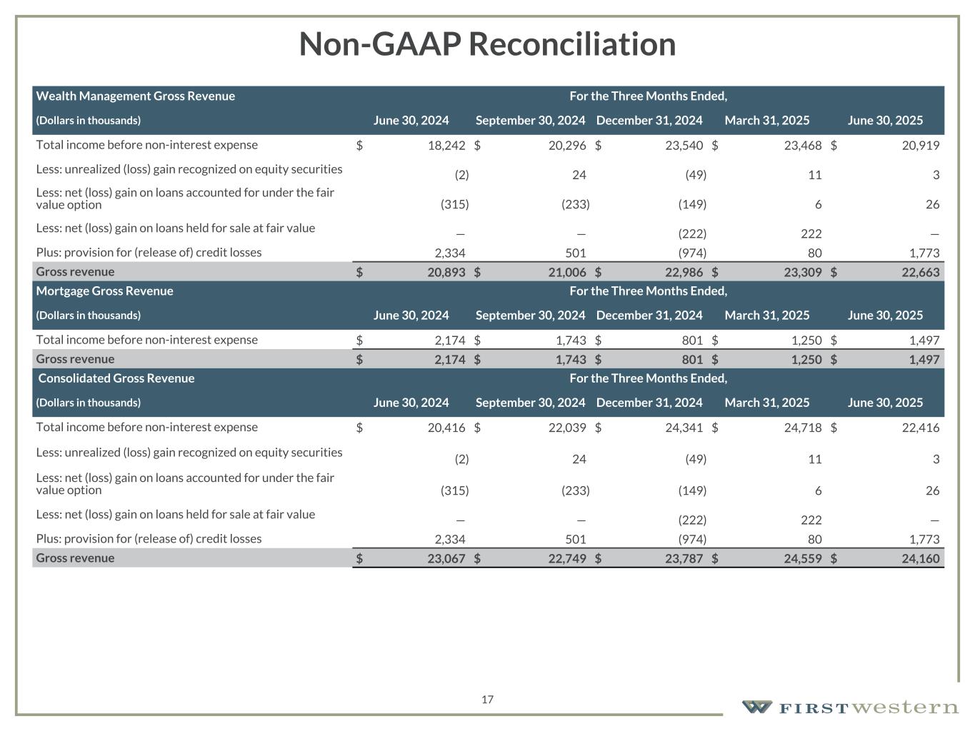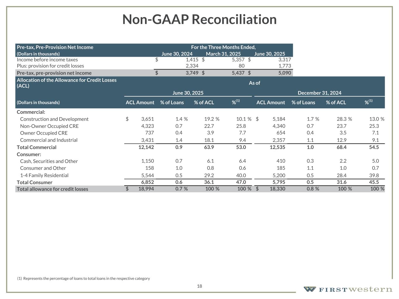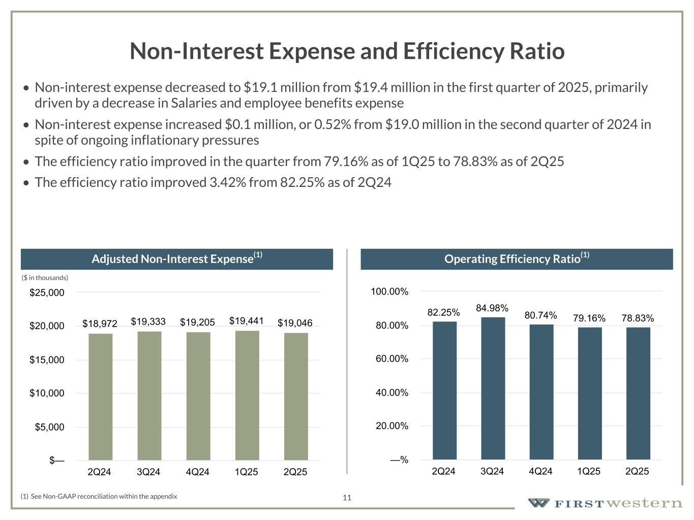 •Non-interest expense decreased $0.3 million from $19.4 million in Q1 2025 to $19.1 million in Q2 2025