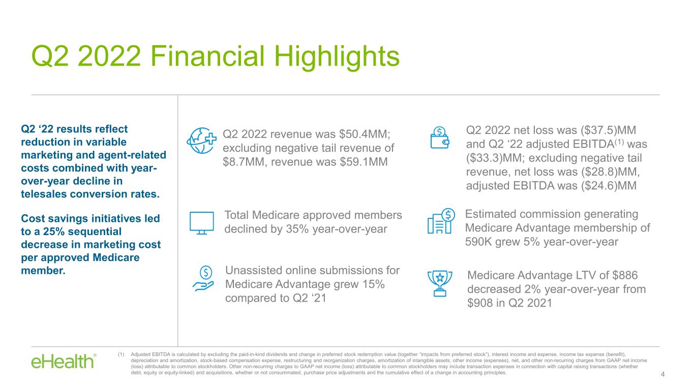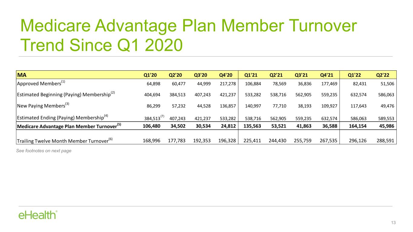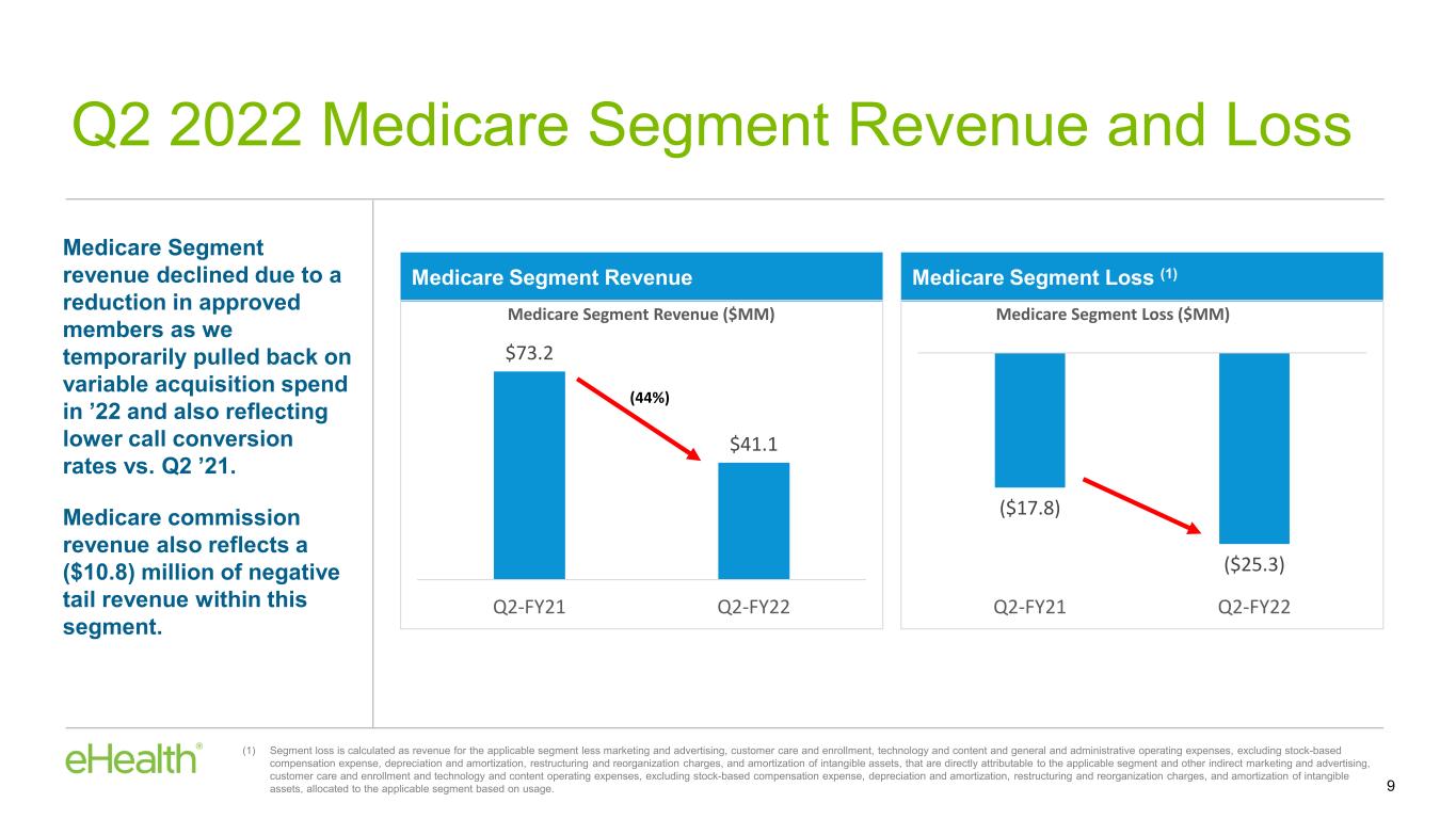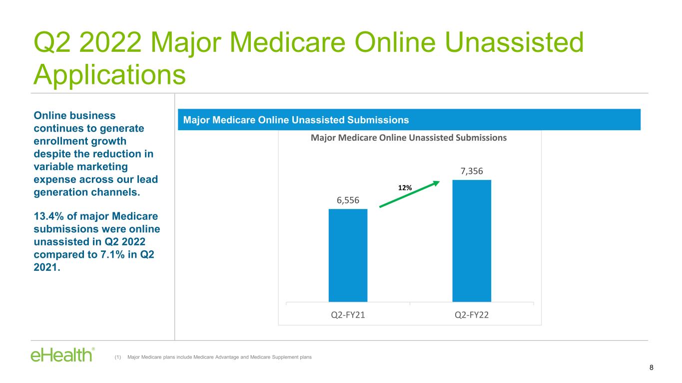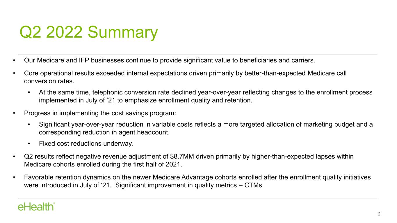 •Year-over-year decline in Medicare telephonic conversion rates, also impacted our results. Q2 2022 is the last full quarter that compares our current results to 2021 quarters that predate our enrollment quality initiatives introduced in July of 2021 that have resulted in a lower conversion rate for Medicare calls.