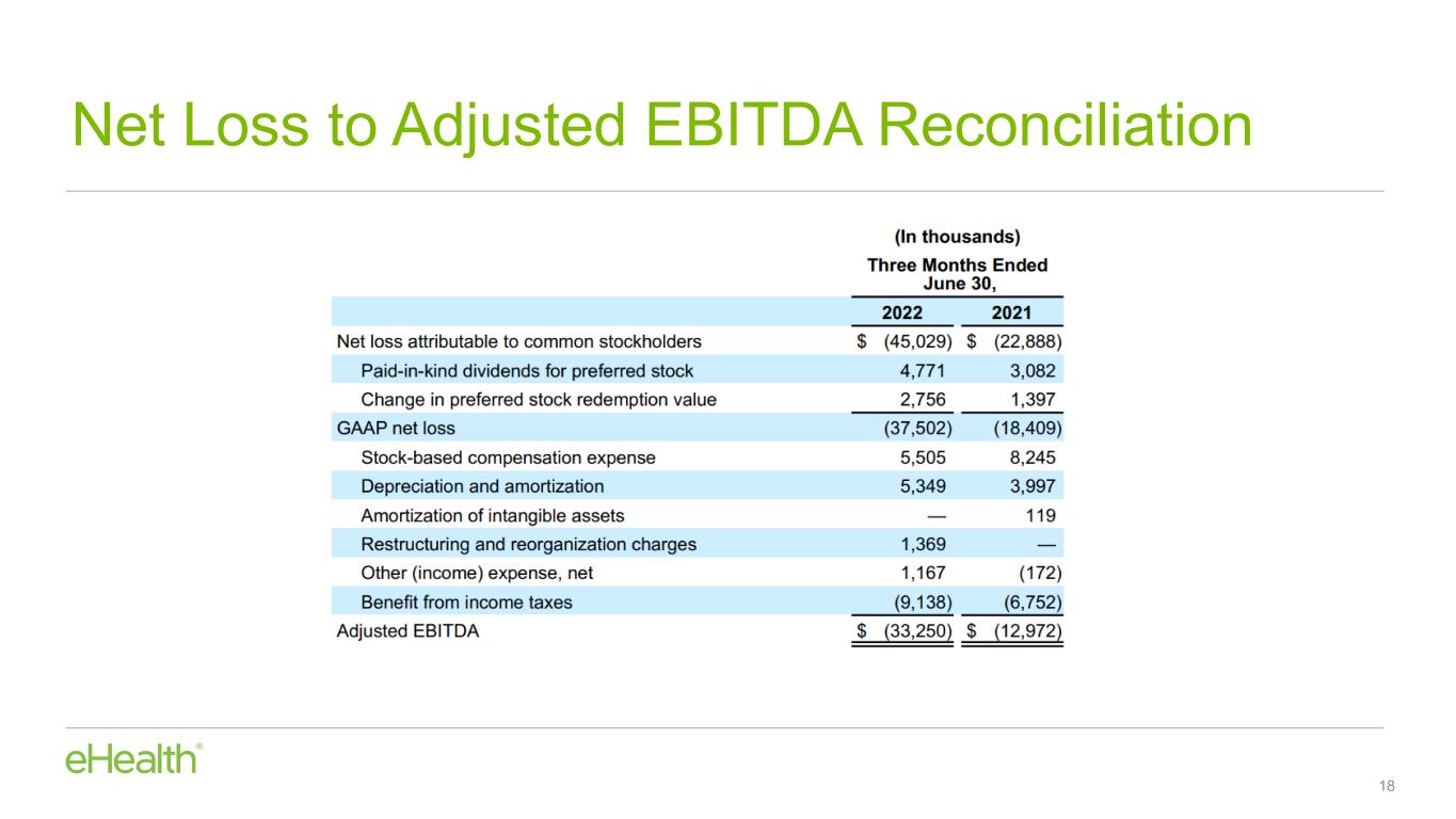 “During the second quarter, we achieved significant execution progress on our 6-point operating plan including an extensive cost transformation program. We are shifting to a more targeted approach to marketing based on channel mix optimization and audience segmentation and deploying new technologies to support our objective of higher telephonic conversions and increased agent effectiveness. Our primary goal with these efforts, is to return eHealth to profitable growth and cash flow generation on an accelerated timeline while continuing to provide significant value to beneficiaries and our carrier partners. As part of this strategy, we further refined our plan for this year’s Annual Enrollment Period to emphasize enrollment quality, retention and margin over growth as reflected in our revised full year outlook.”